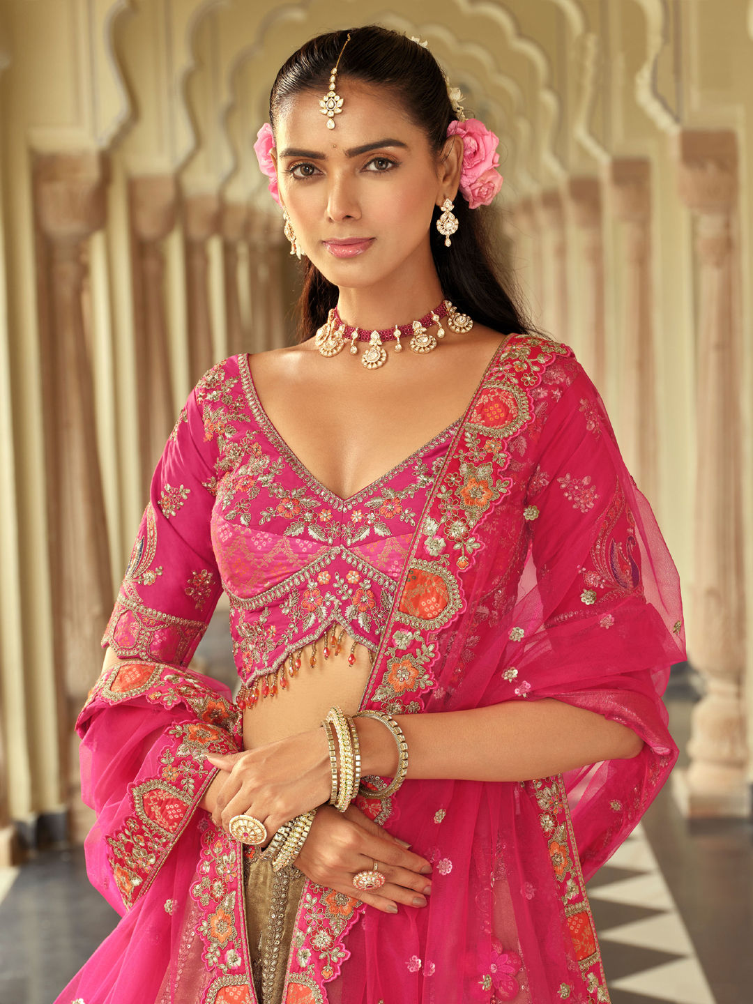Silk Wedding Ready to Wear Lehenga in Pink and Majenta with Weaving work