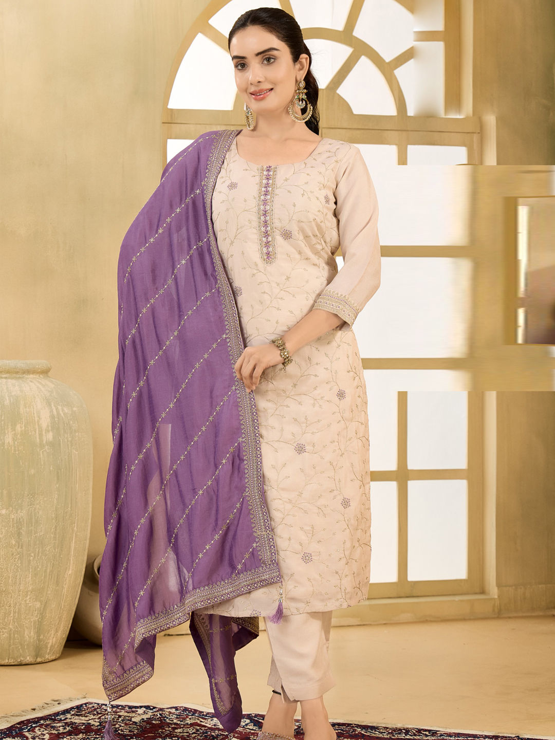 Beige and Brown color Salwar Kameez in Silk fabric with Embroidered, Resham, Sequence, Thread, Zari work