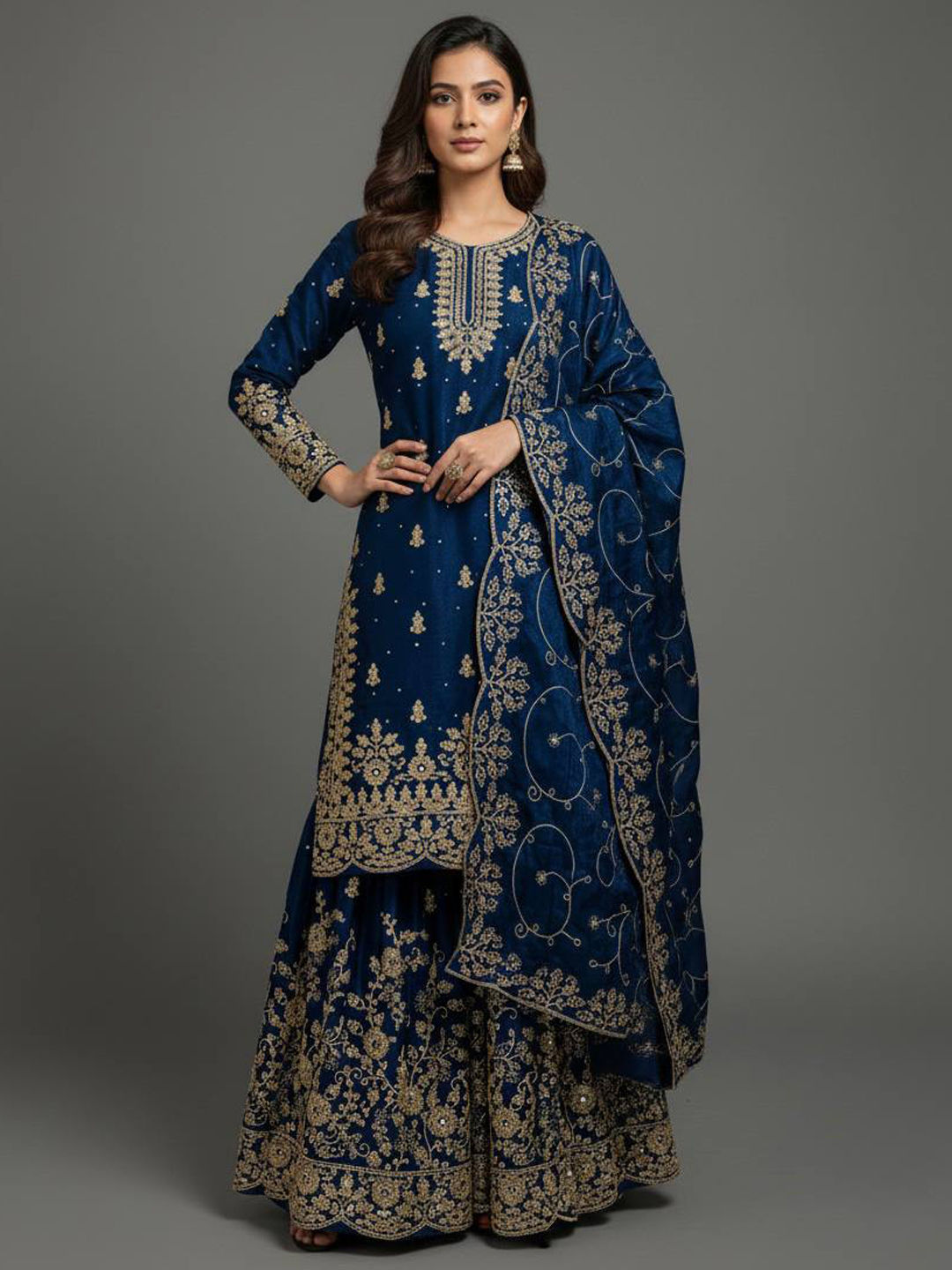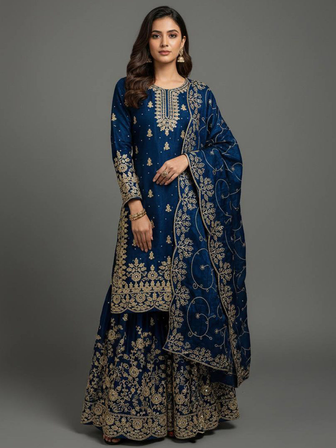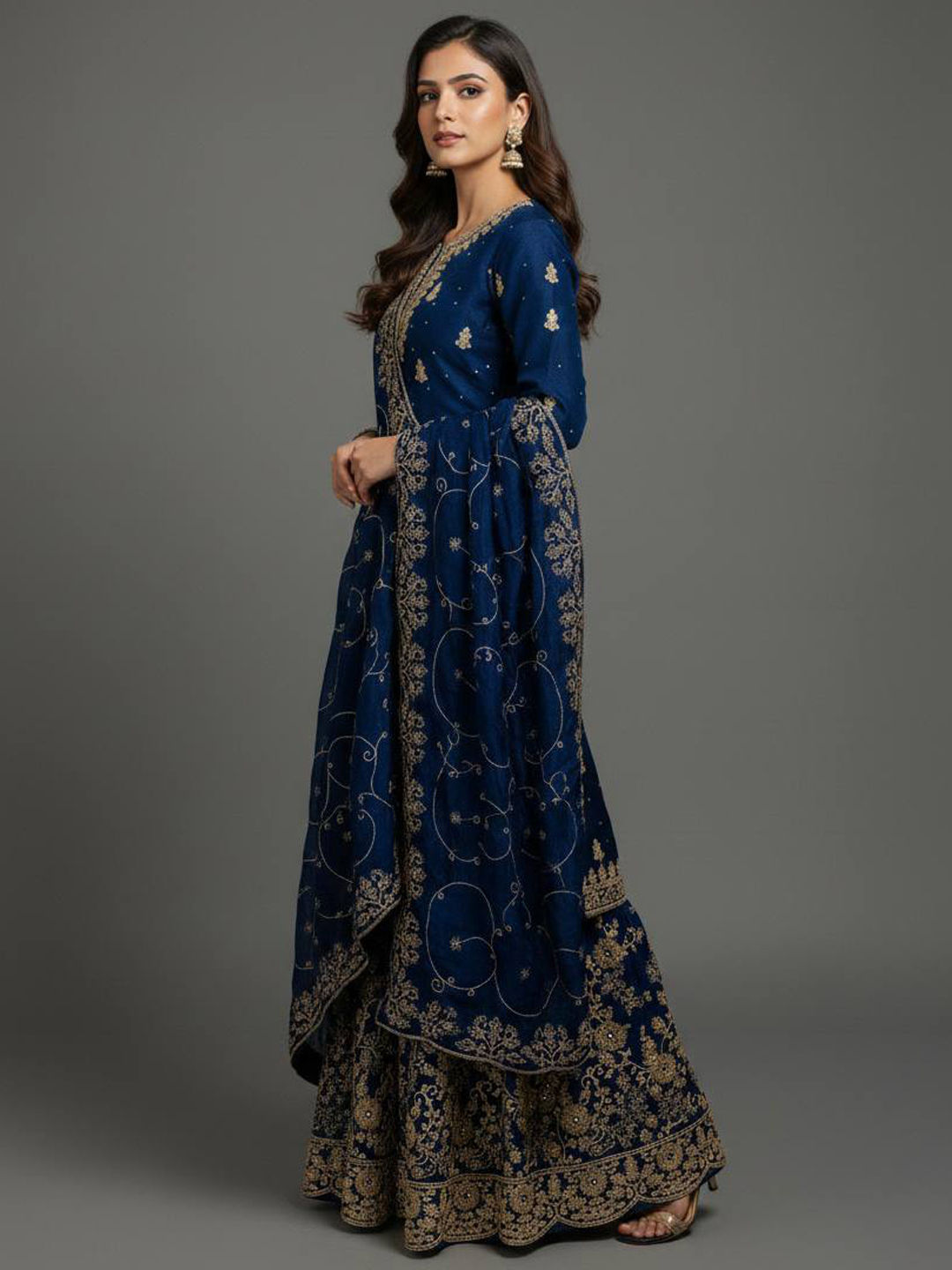 in Blue with Zari work