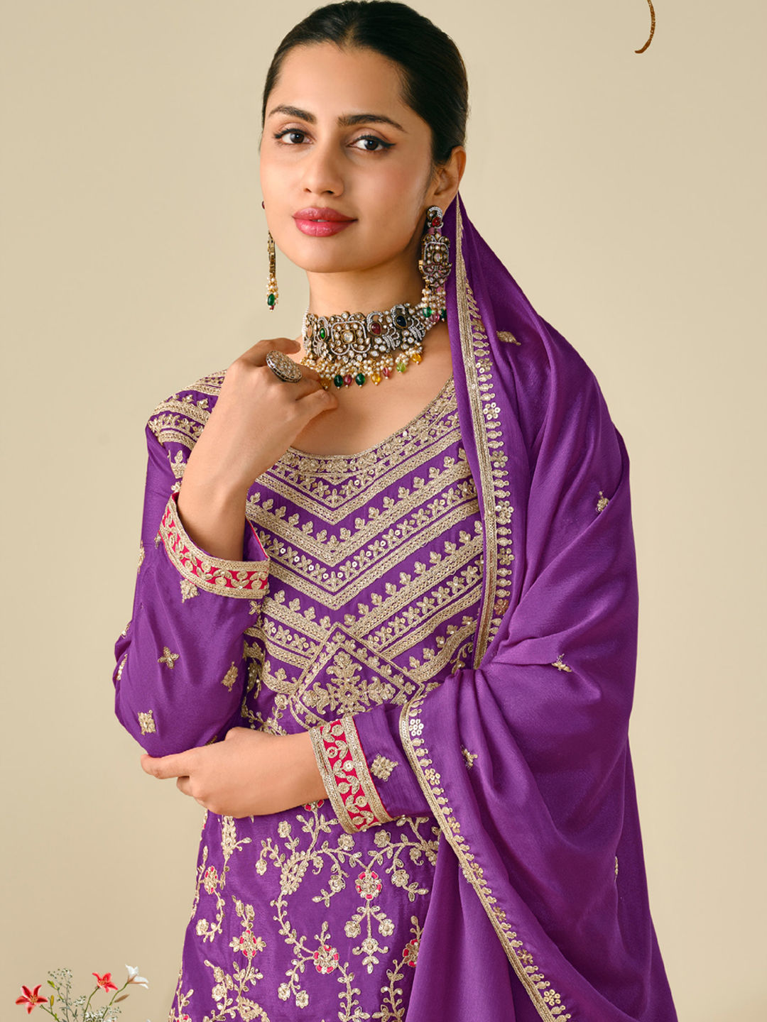 Purple and Violet color Salwar Kameez in Silk fabric with Embroidered, Sequence, Thread work