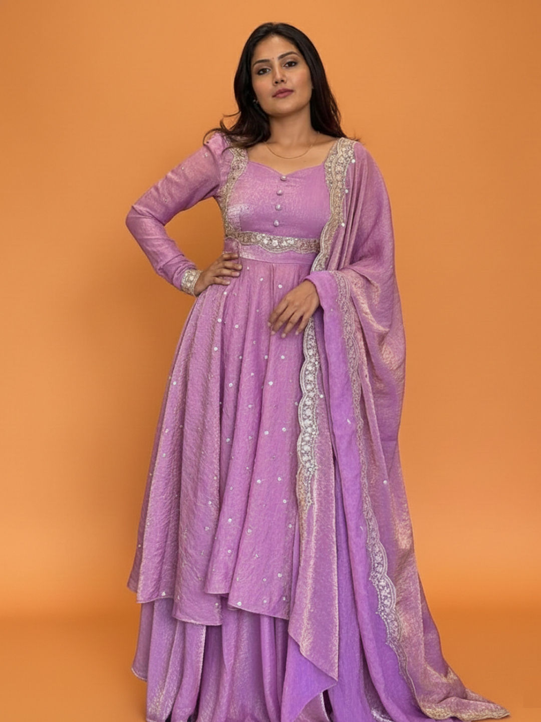in Purple and Violet with Thread work