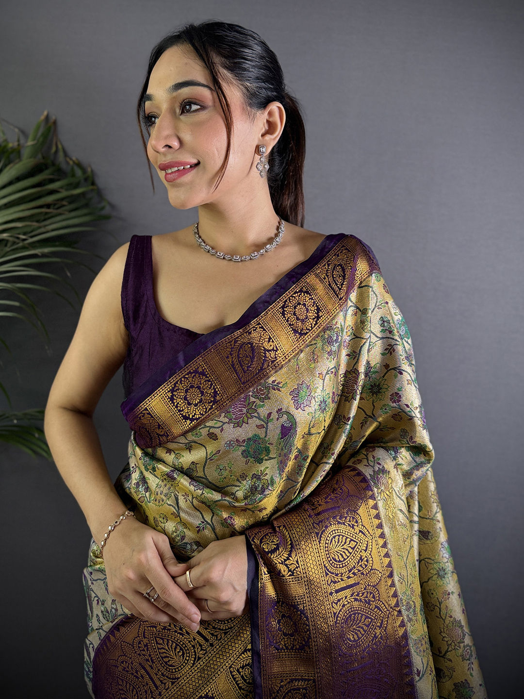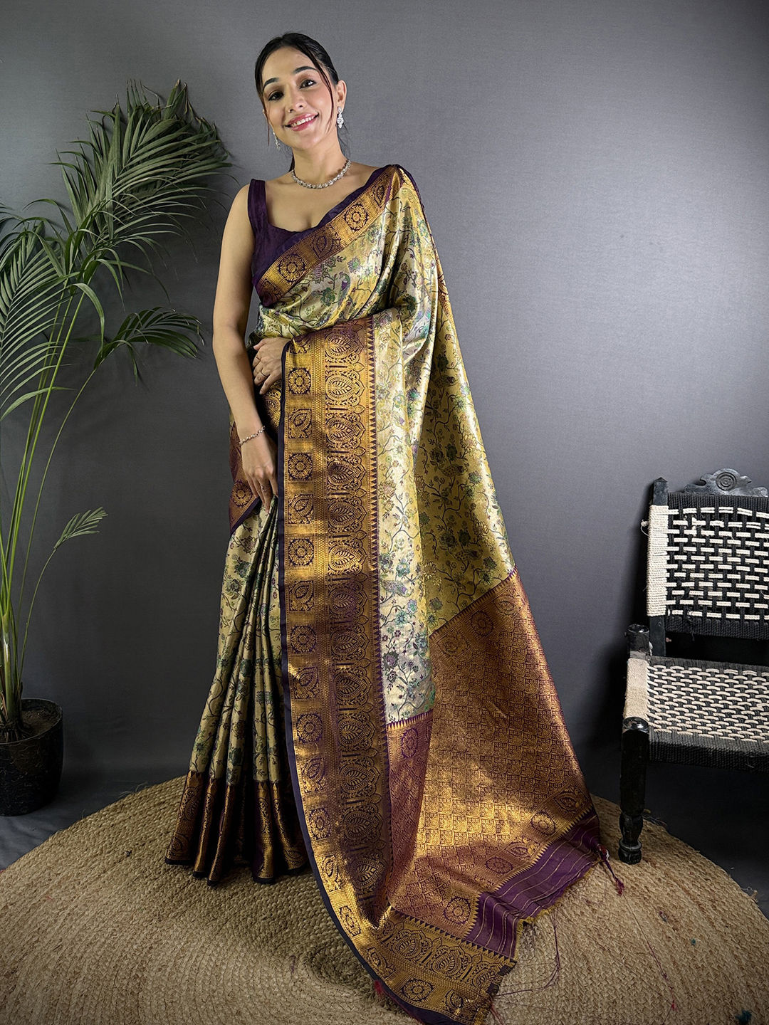 Silk Wedding Saree in Beige and Brown with Weaving work