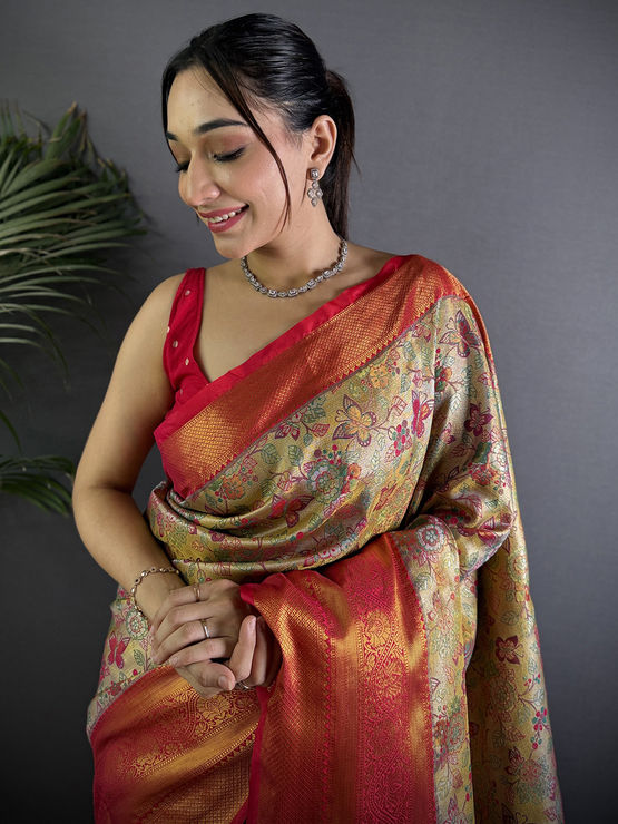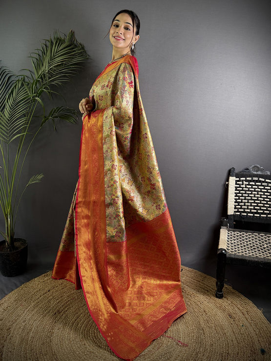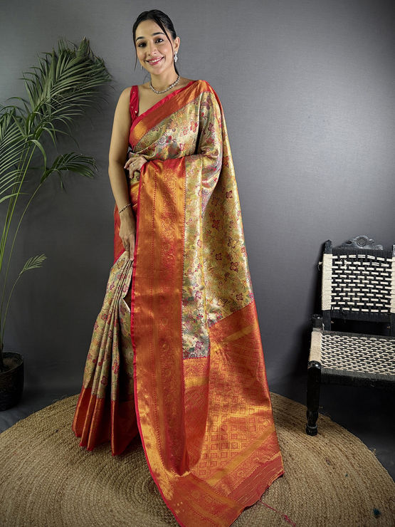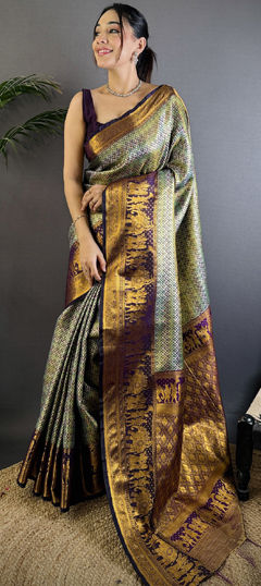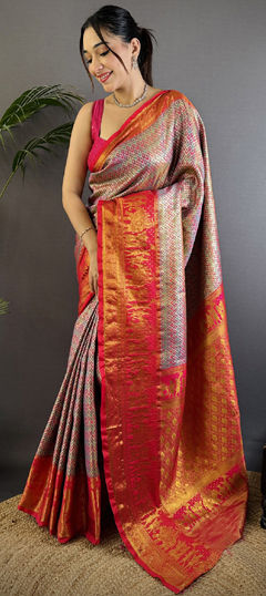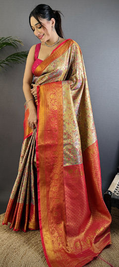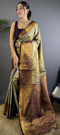 Silk Wedding Saree in Beige and Brown with Weaving work