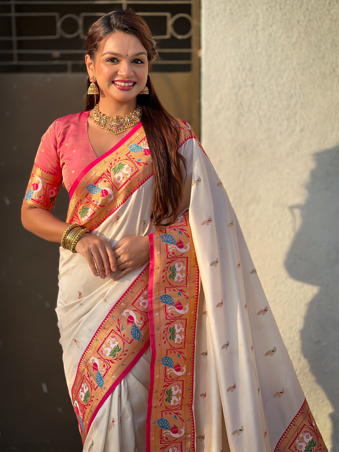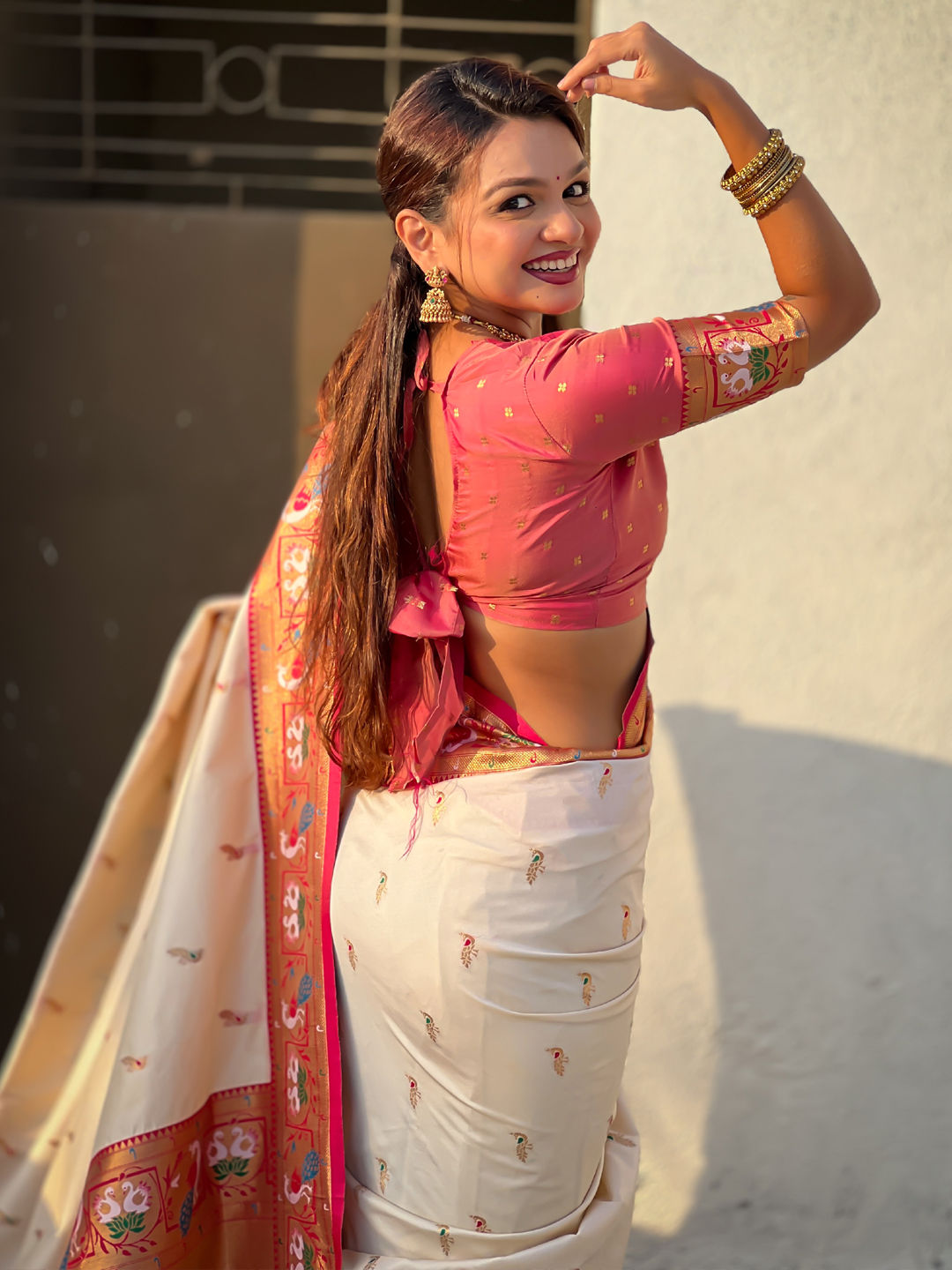 Beige and Brown color Saree in Silk fabric with Weaving work