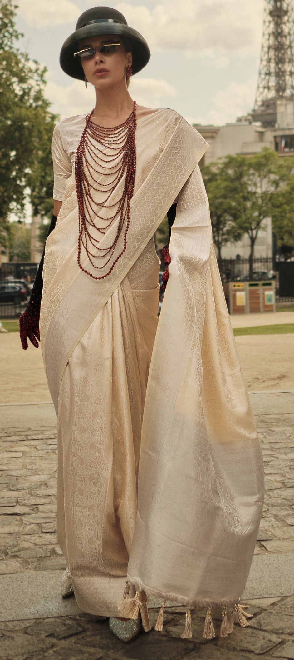 Beige and Brown color Saree in Silk fabric with Weaving, Zari work