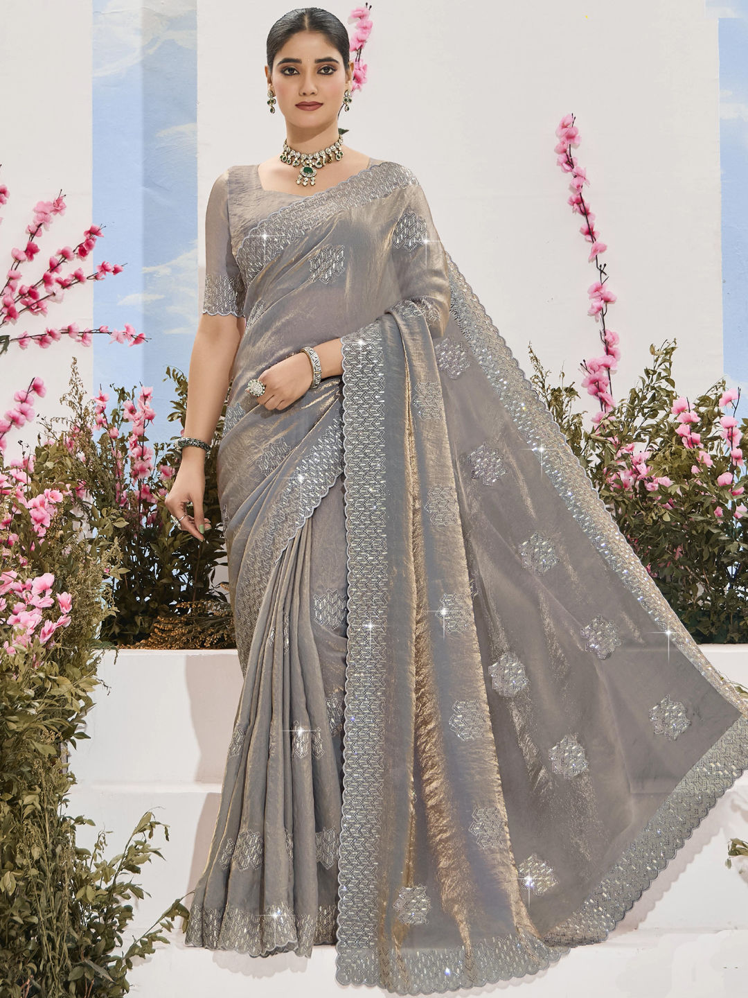 Black and Grey color Saree in Silk fabric with Sequence, Thread work