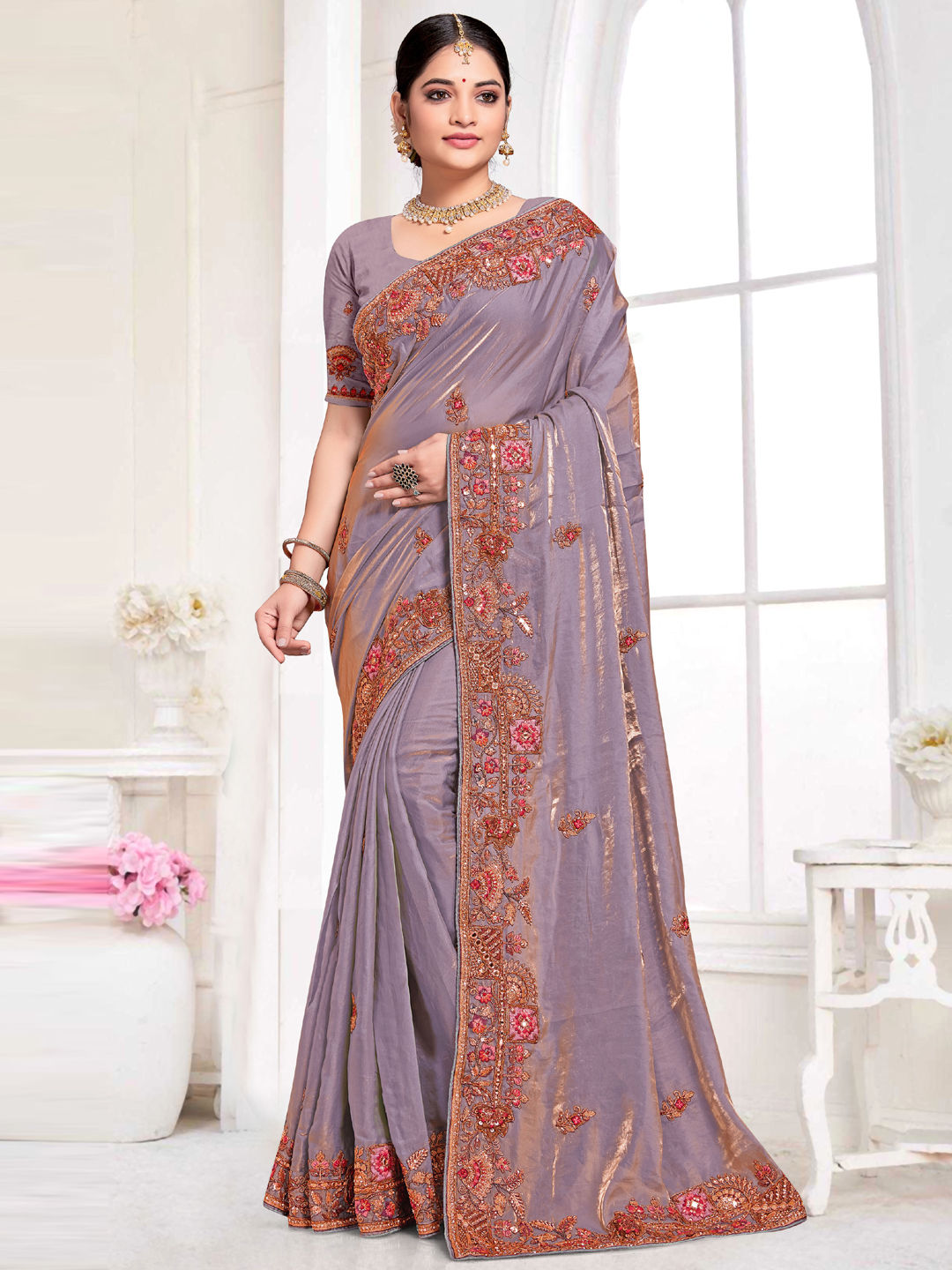 Black and Grey color Saree in Silk fabric with Bugle Beads, Embroidered, Resham, Thread, Zircon work