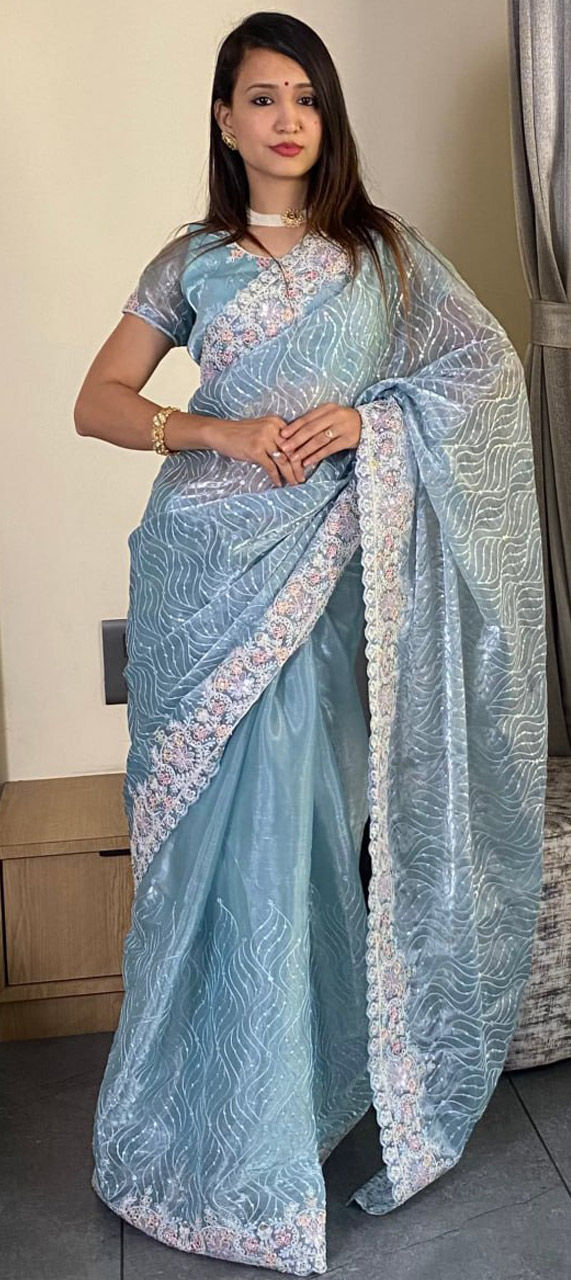 Blue color Saree in Art Silk, Silk fabric with Embroidered, Sequence, Thread work