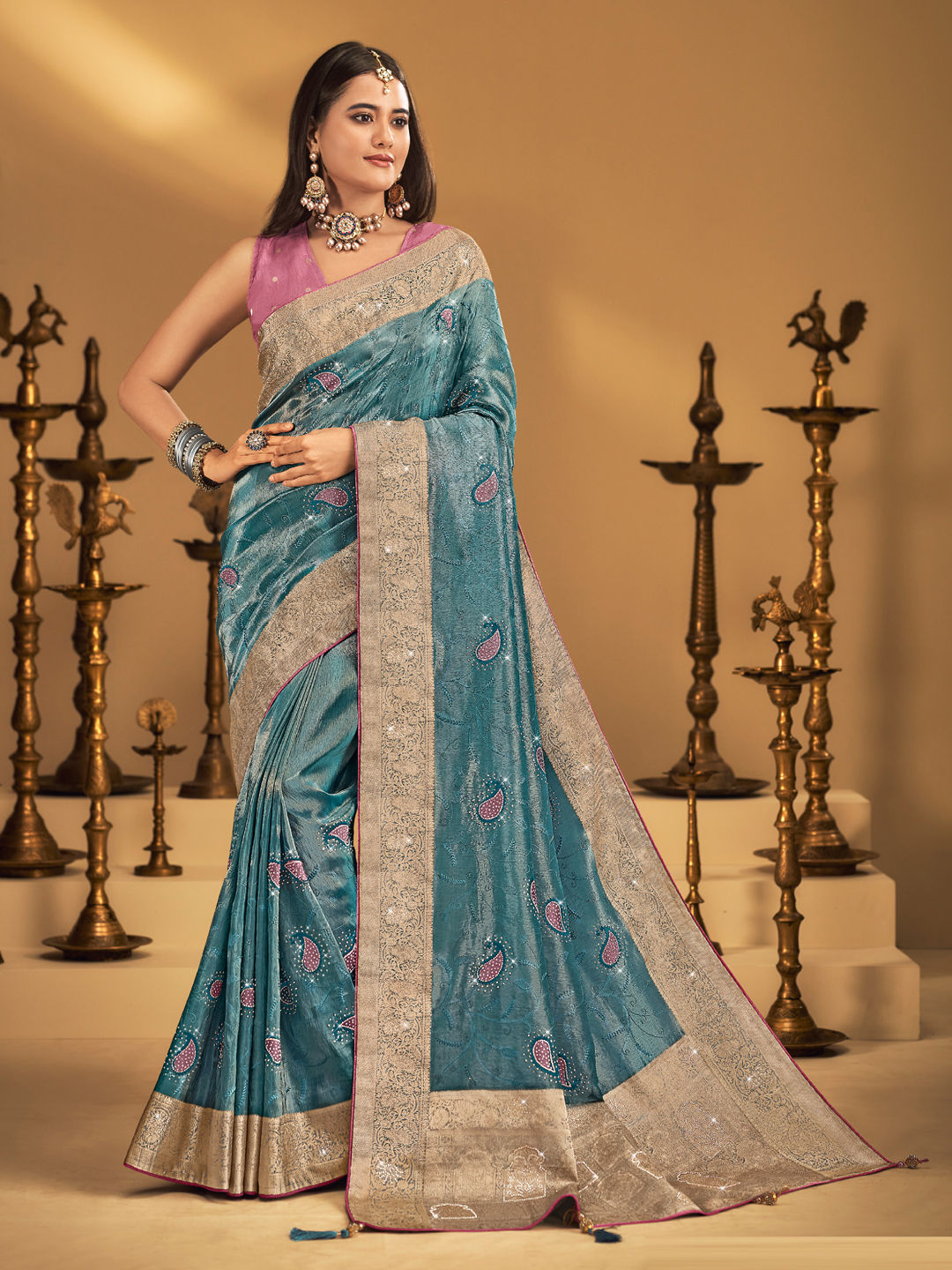 Blue color Saree in Silk fabric with Embroidered, Stone, Tye n Dye, Weaving work