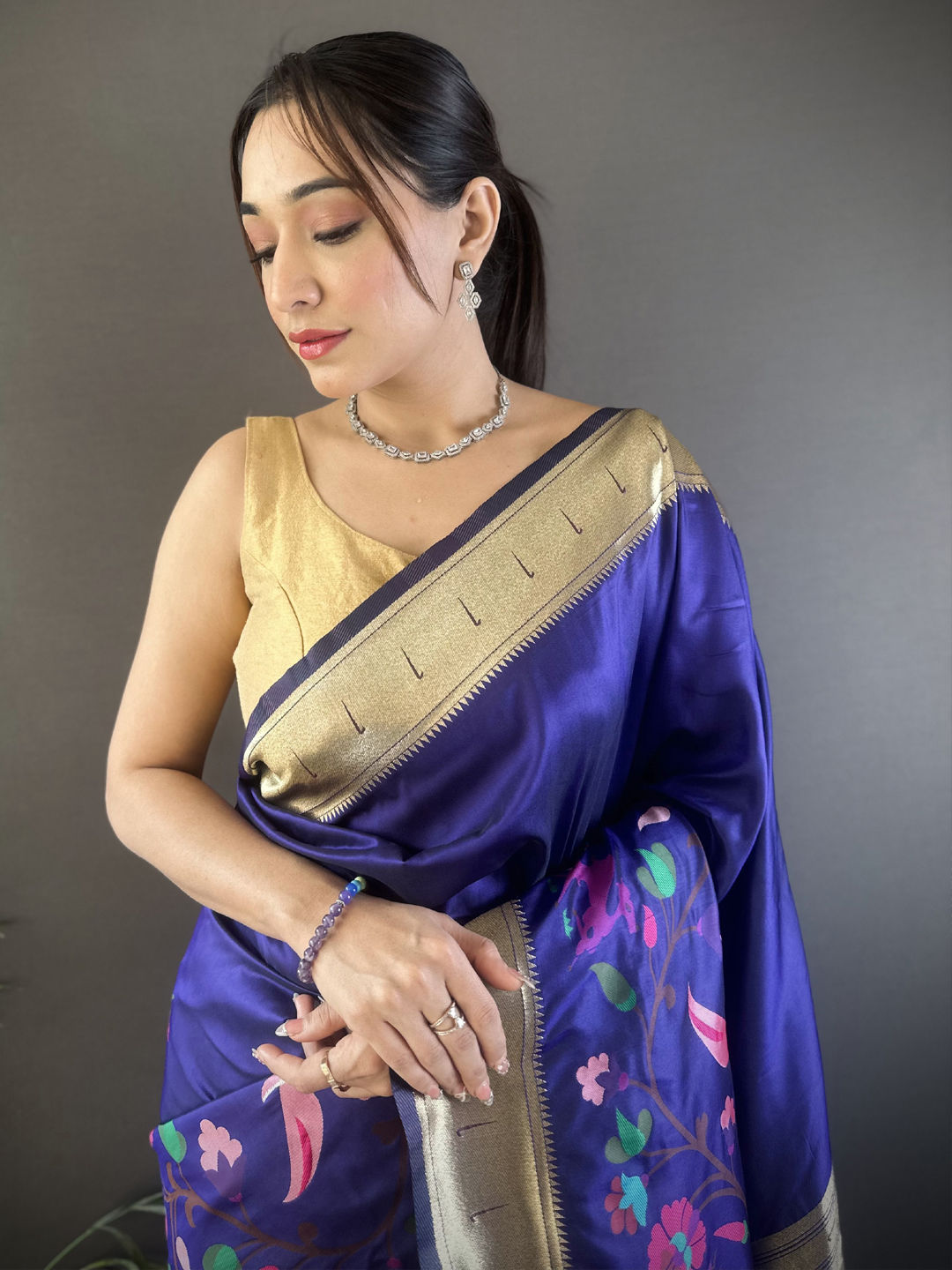 in Blue with Weaving work