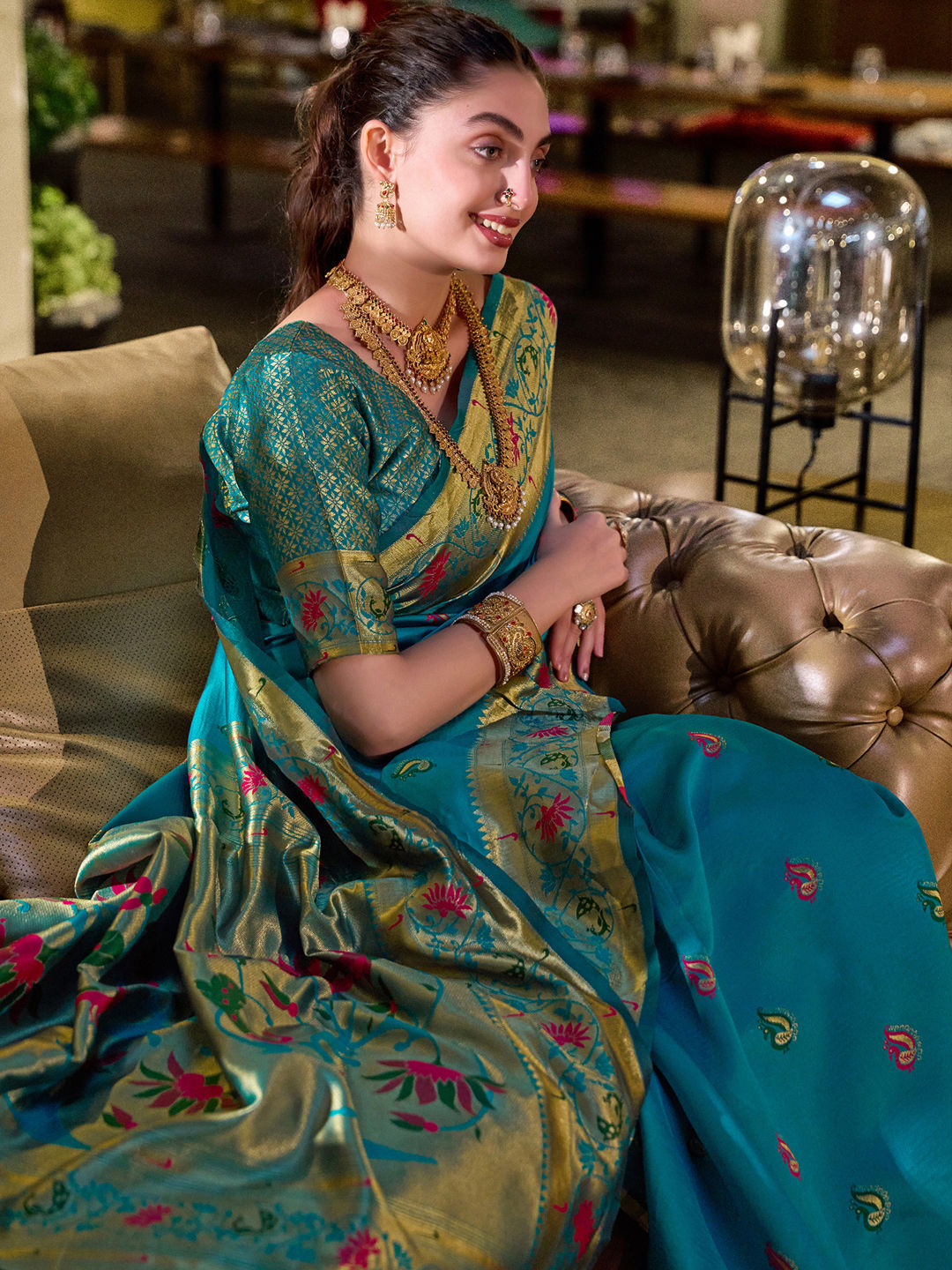 Blue color Saree in Blended, Silk fabric with Weaving, Zari work