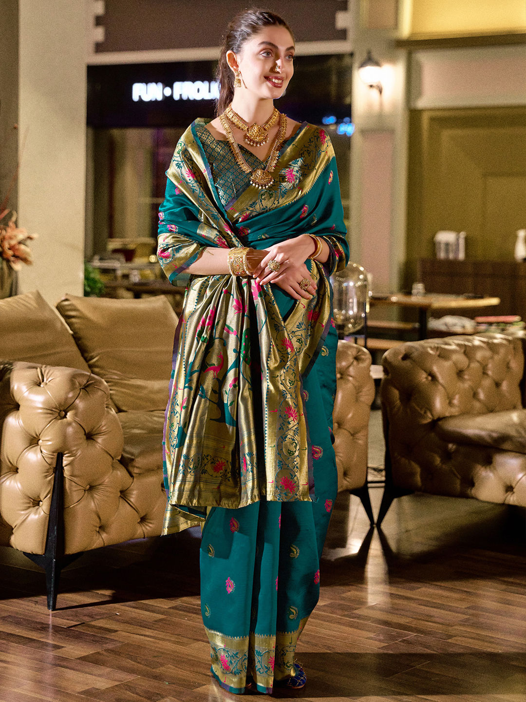 Blue color Saree in Blended, Silk fabric with Weaving, Zari work