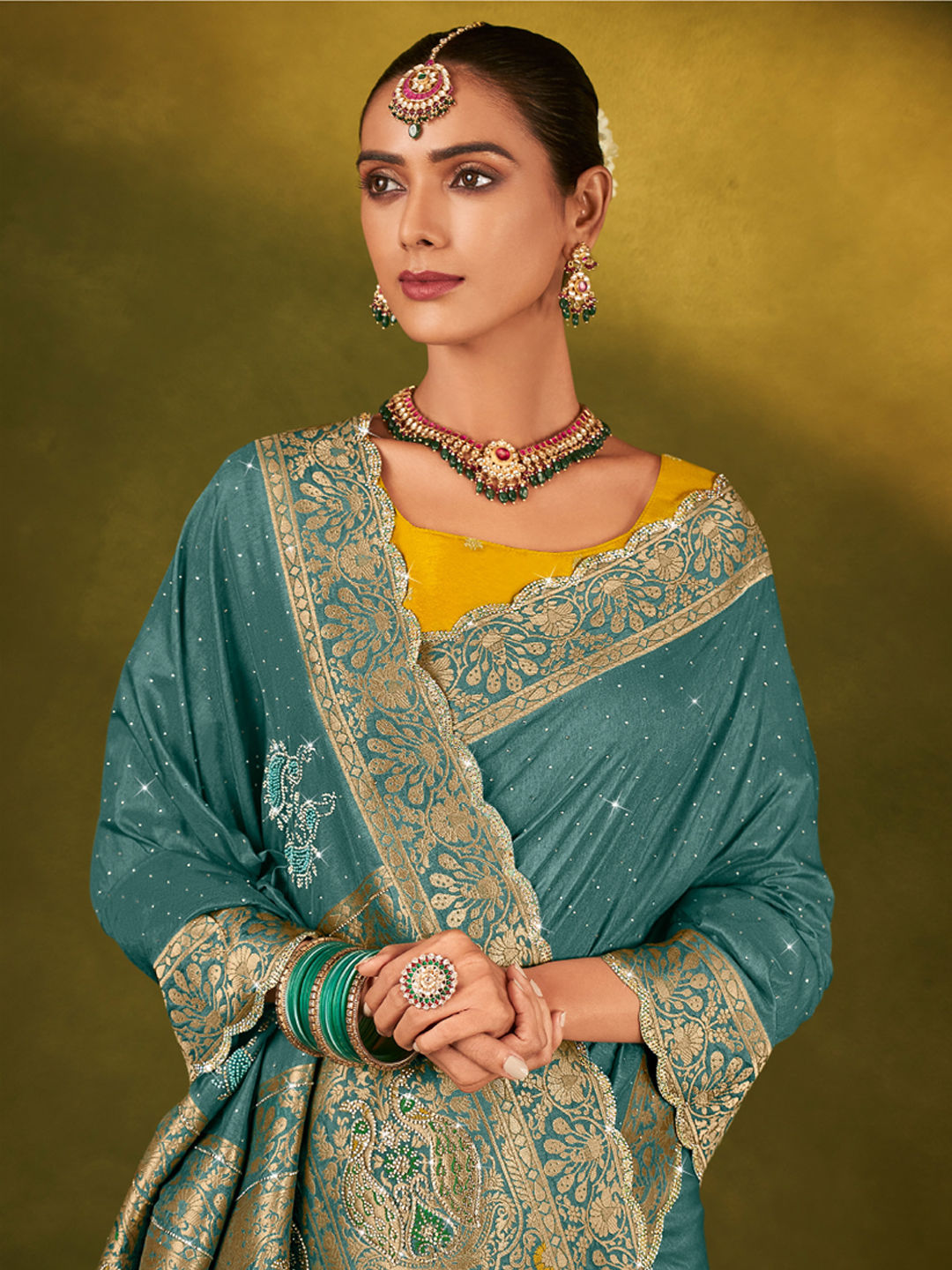 Silk Bridal Saree in Blue with Swarovski work