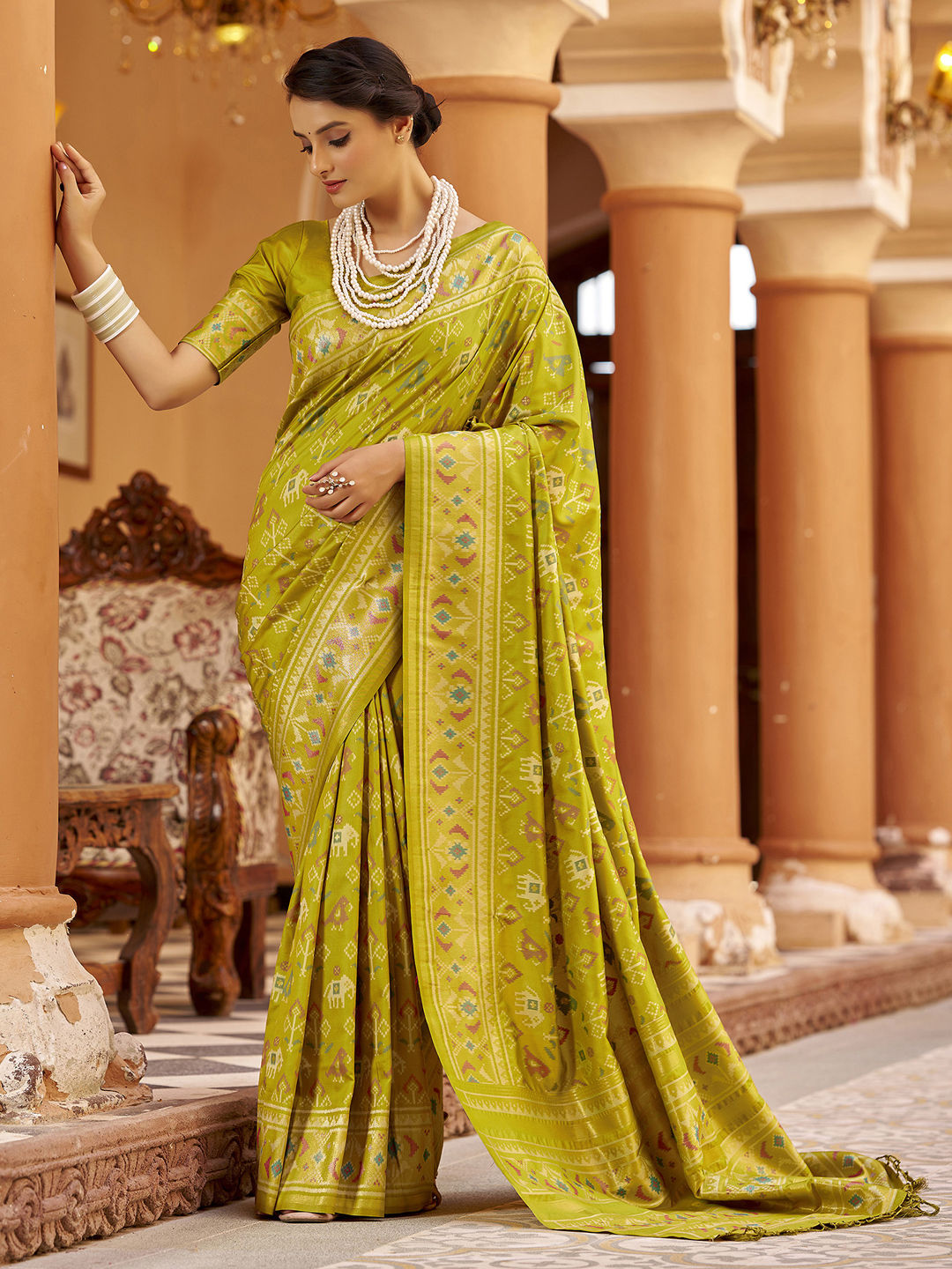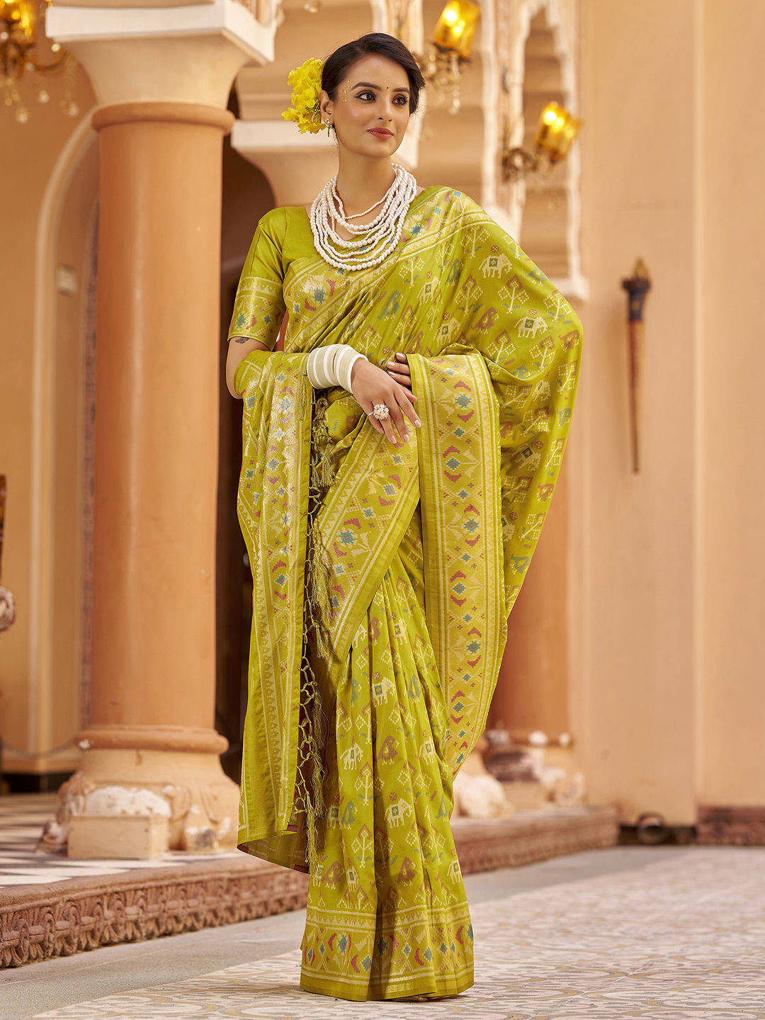 Green color Saree in Silk fabric with Weaving work