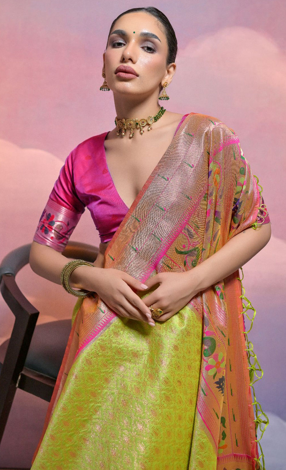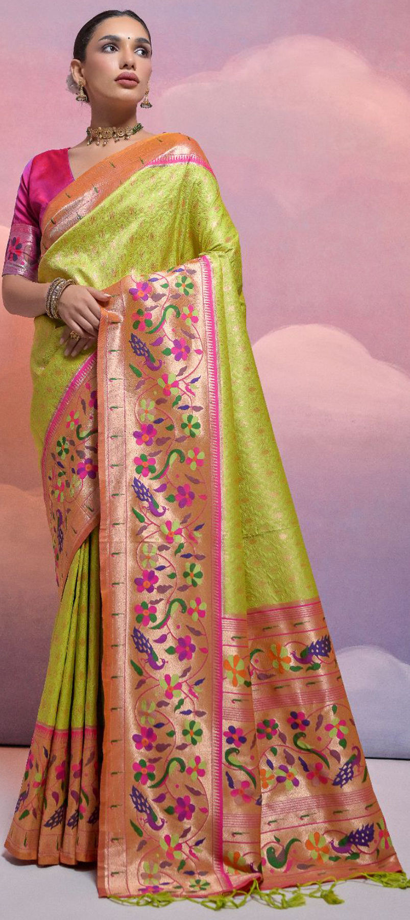 in Green with Zari work