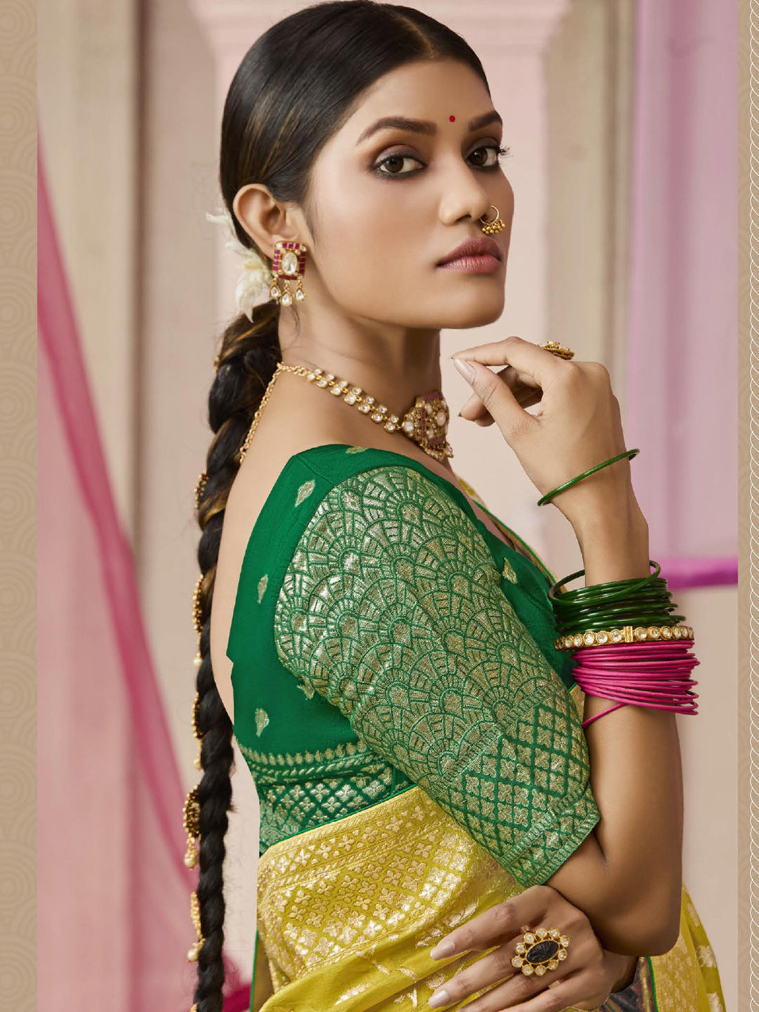 in Green with Zari work