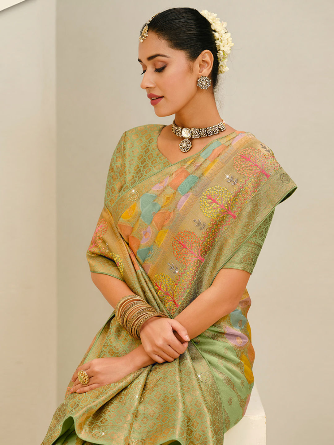 in Green with Zari work