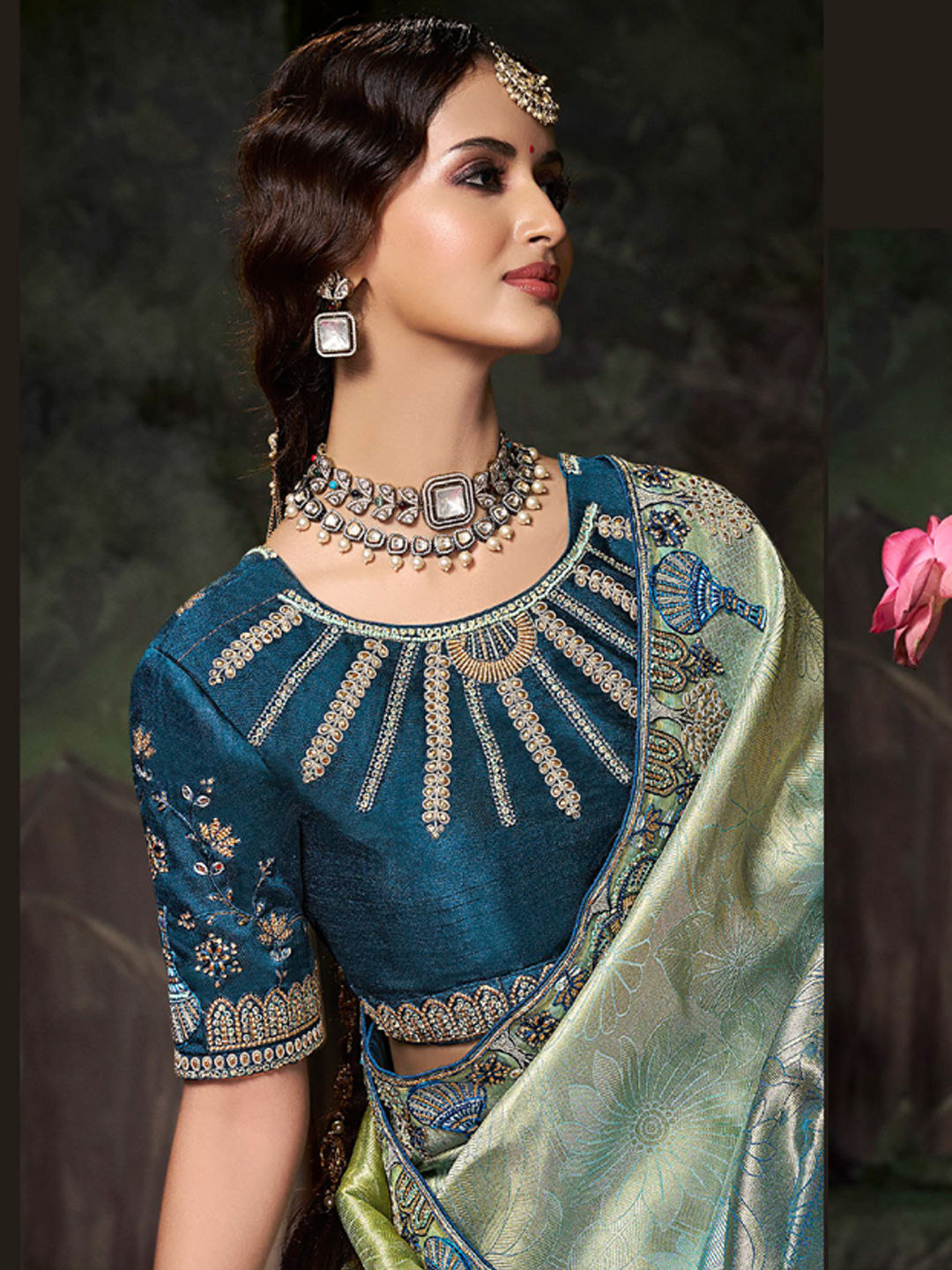 in Green with Zari work