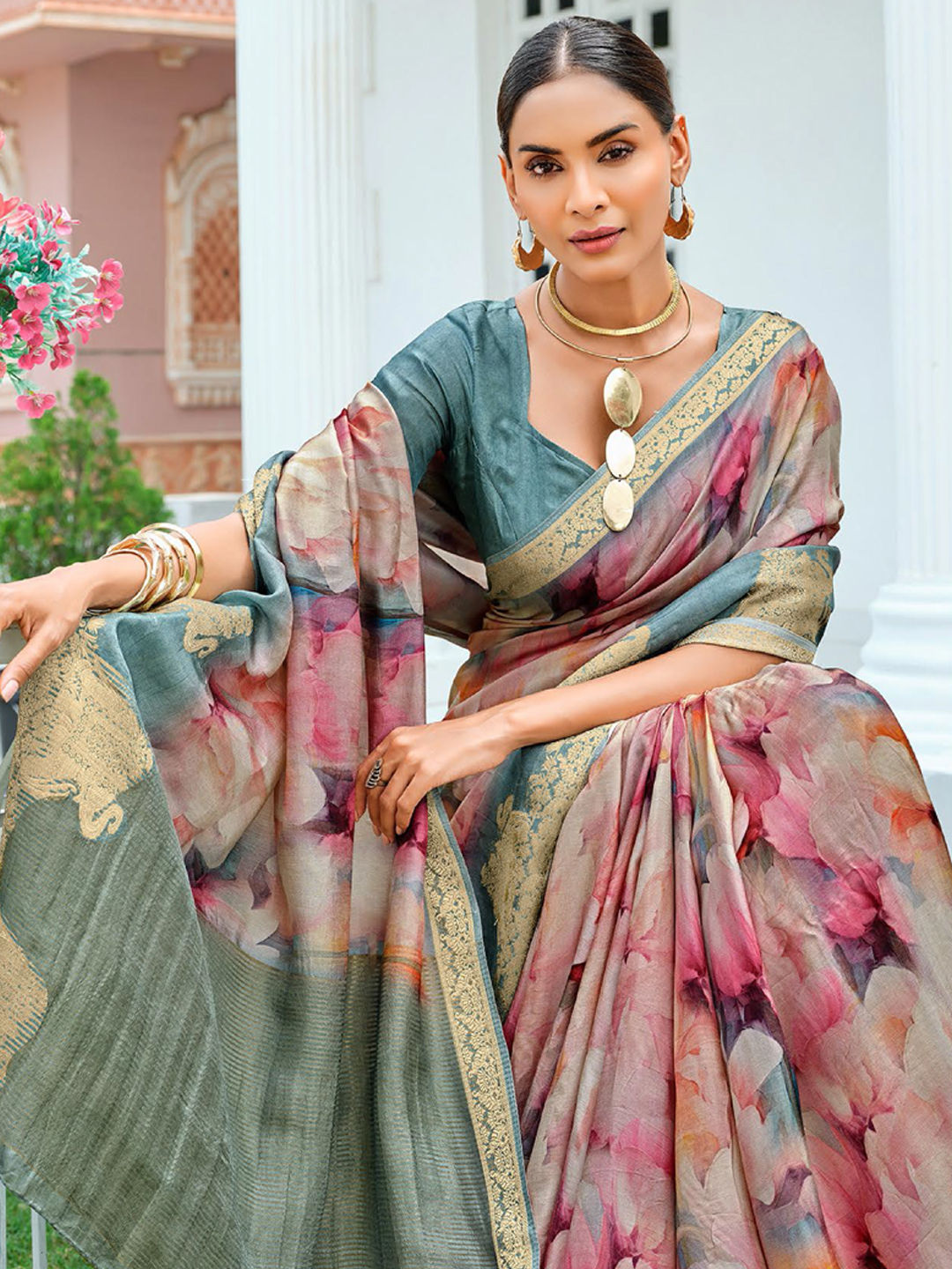 Multicolor color Saree in Silk fabric with Printed, Weaving work