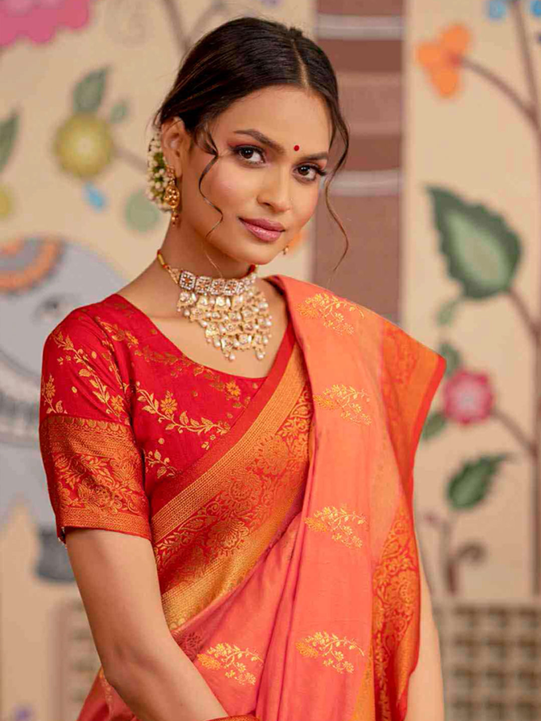Silk Traditional Saree in Red and Maroon with Weaving work