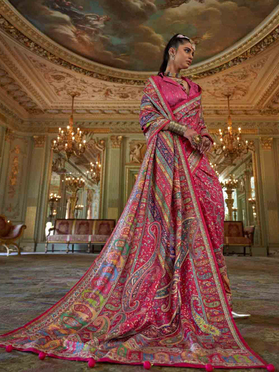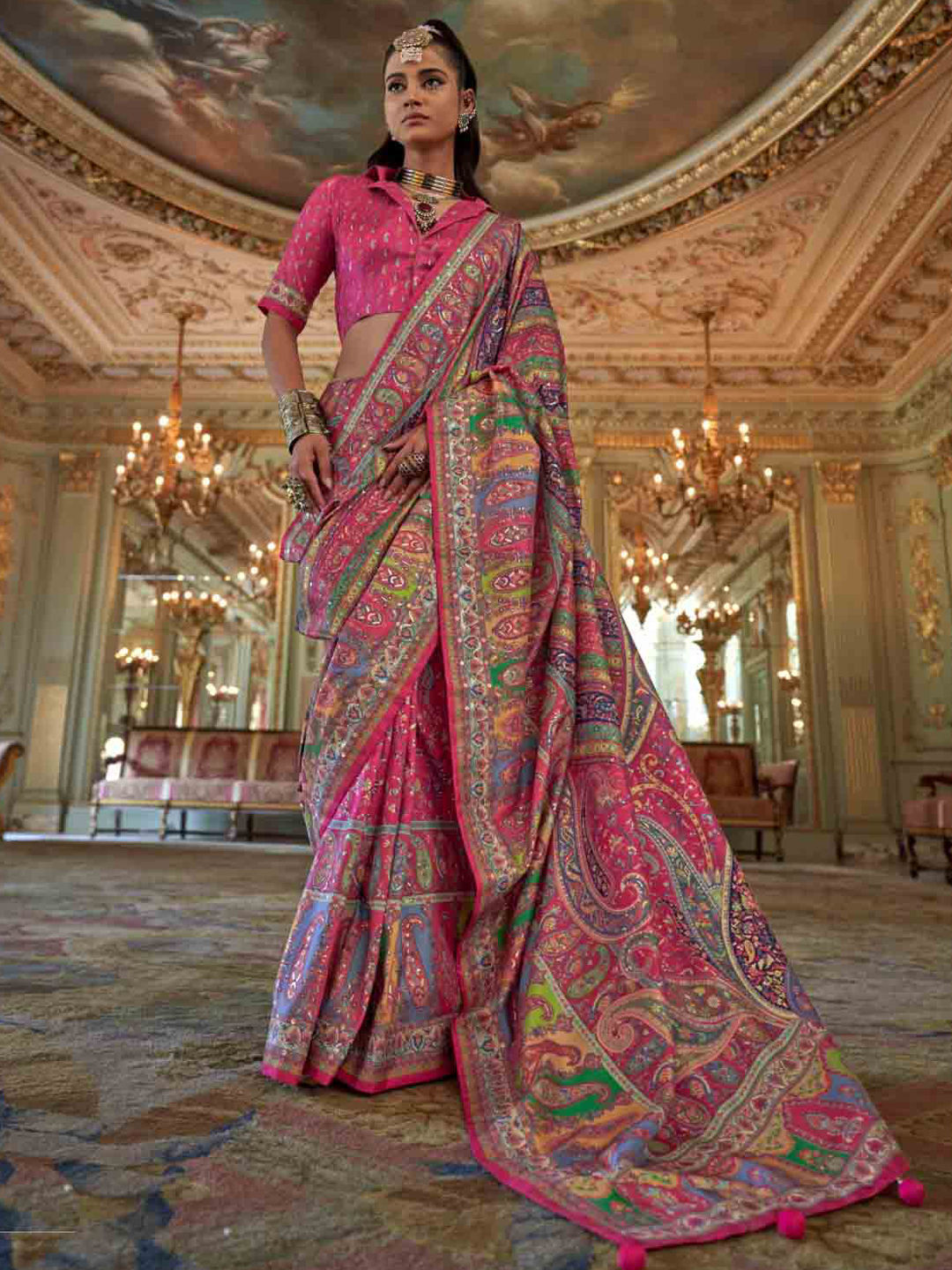 Pink and Majenta color Saree in Silk fabric with Printed work