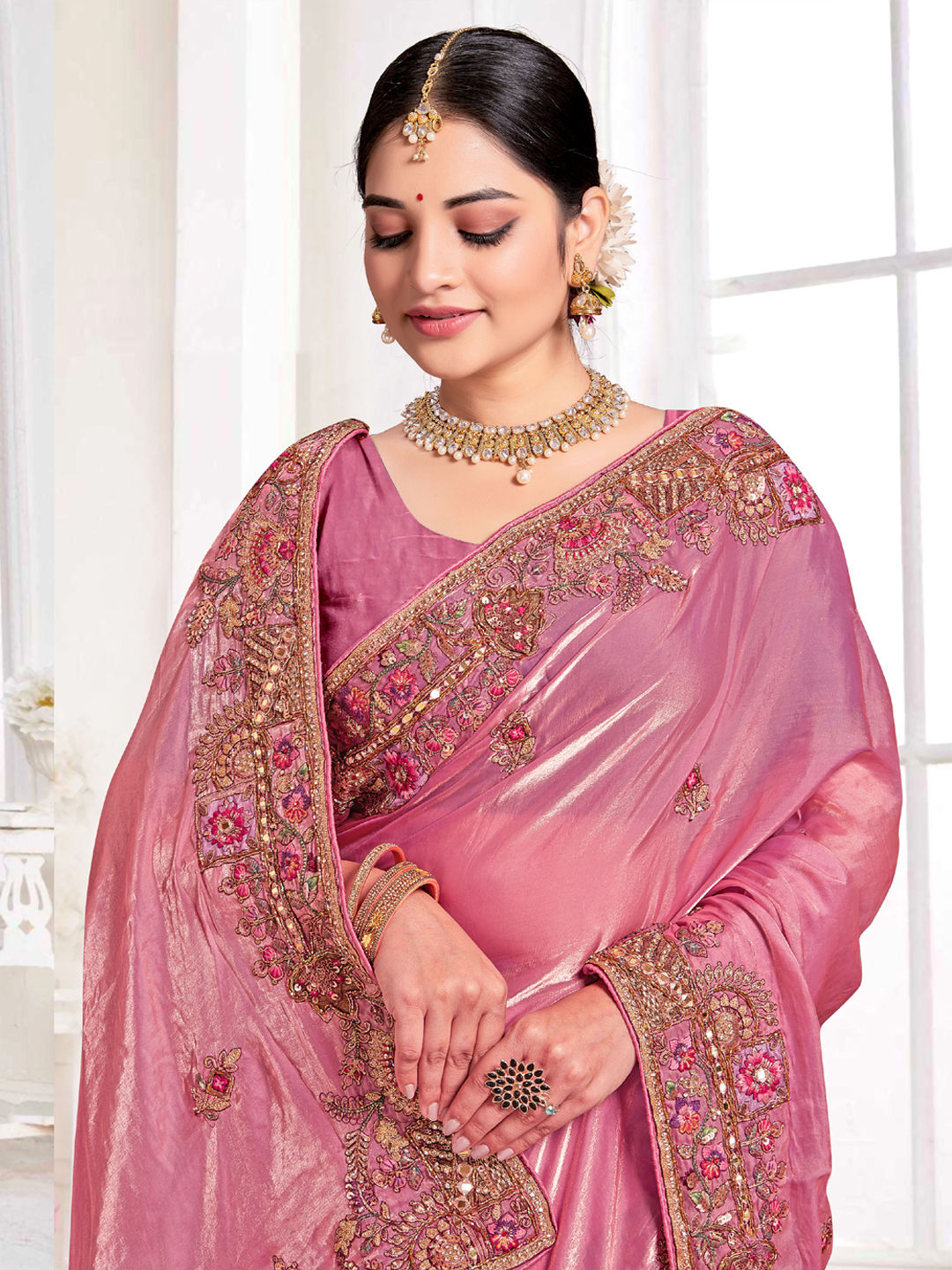 Pink and Majenta color Saree in Silk fabric with Bugle Beads, Embroidered, Resham, Thread, Zircon work