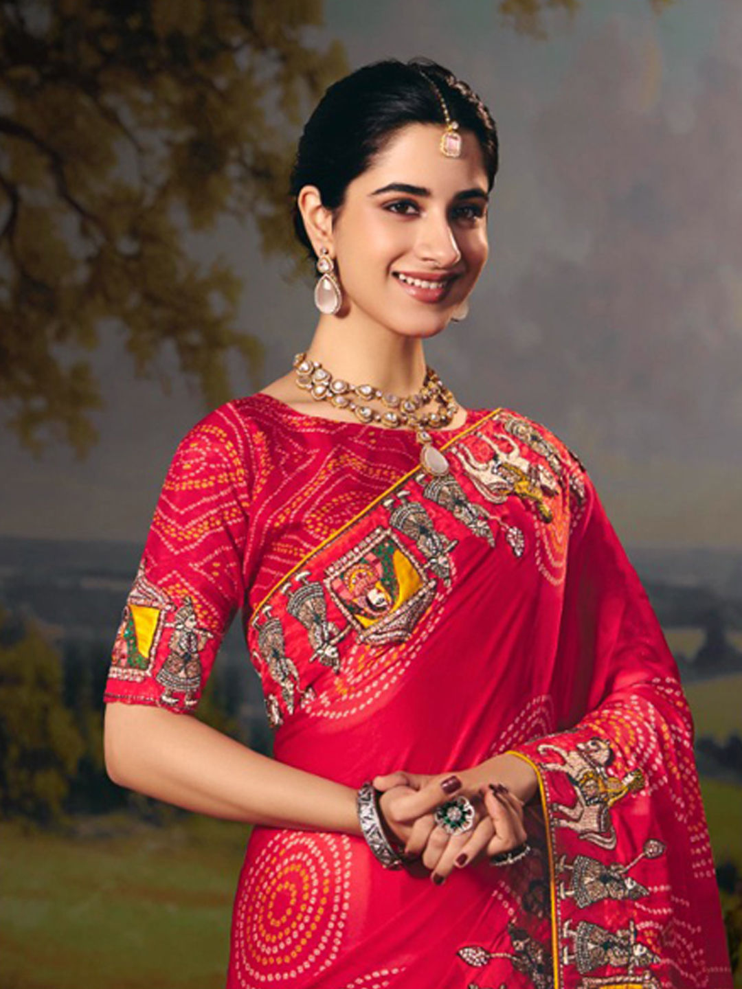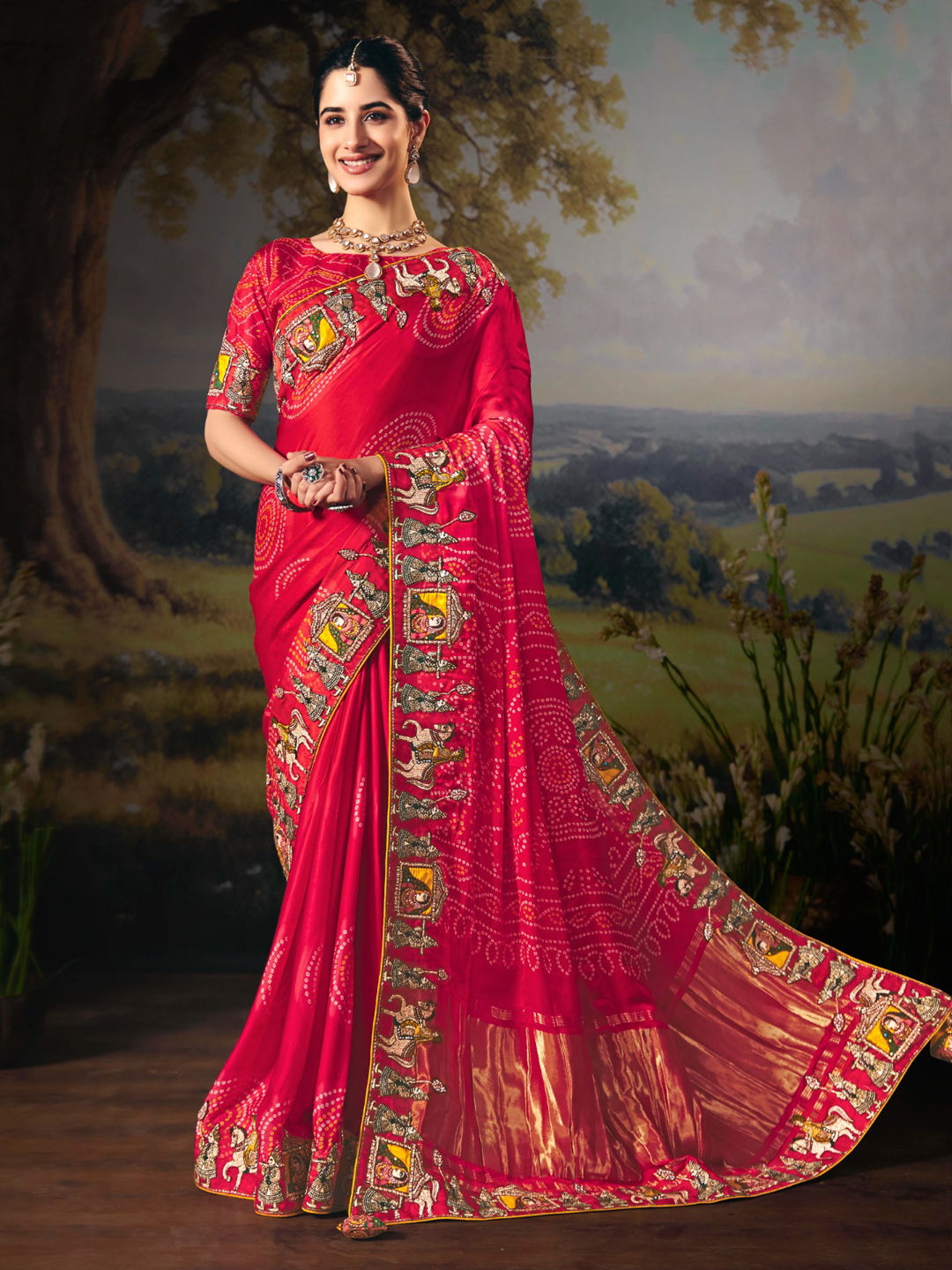 Pink and Majenta color Saree in Silk fabric with Bandhej, Border, Embroidered, Printed, Sequence, Thread work