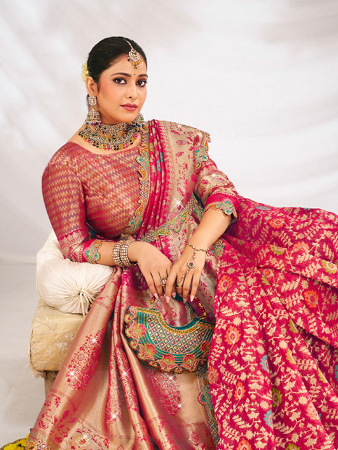Silk Wedding Saree in Pink and Majenta with Stone work
