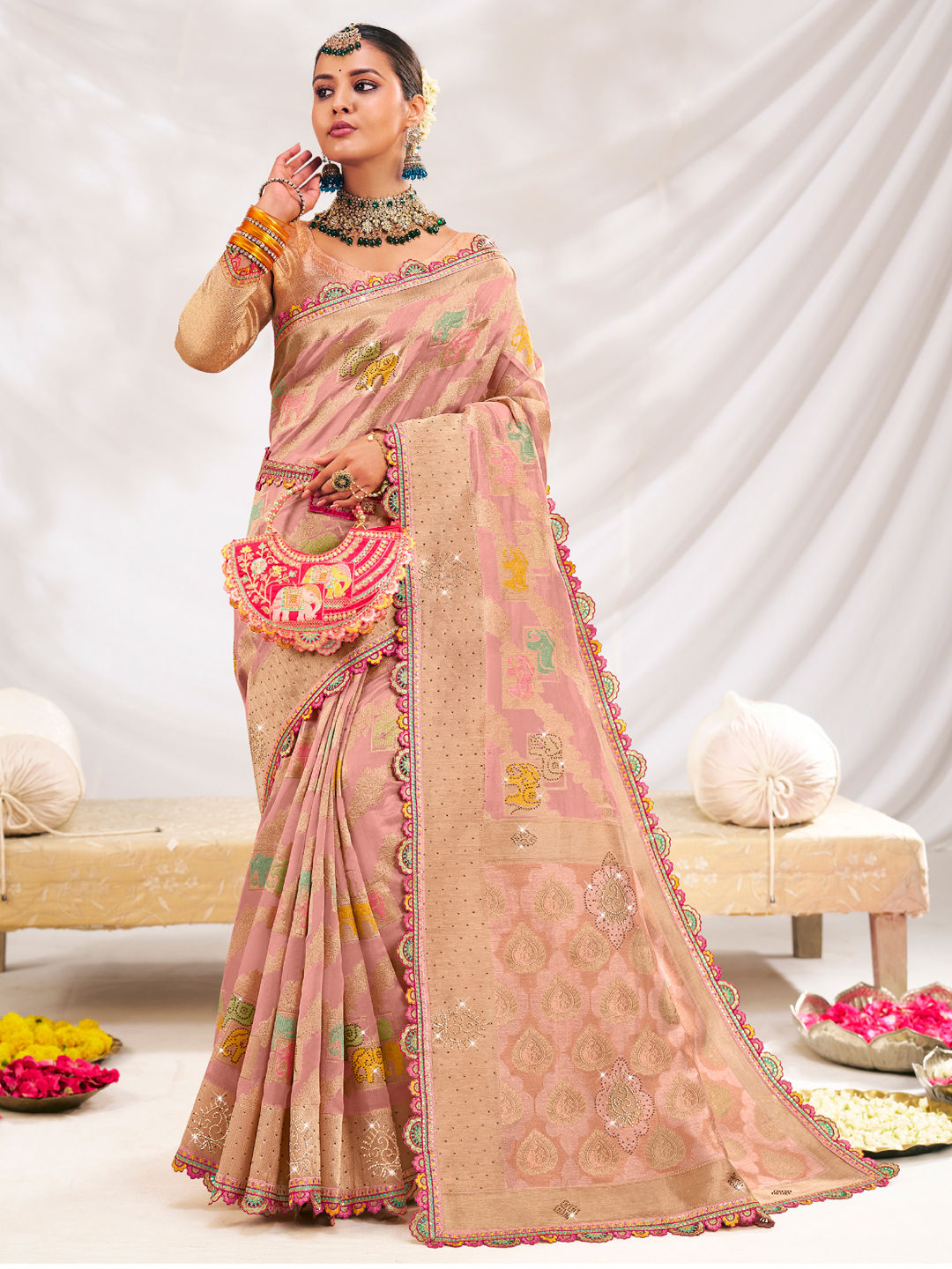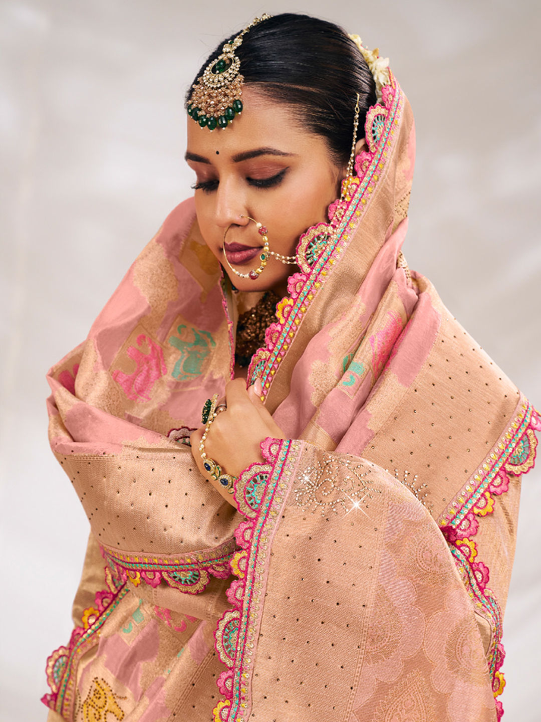 Silk Wedding Saree in Pink and Majenta with Stone work