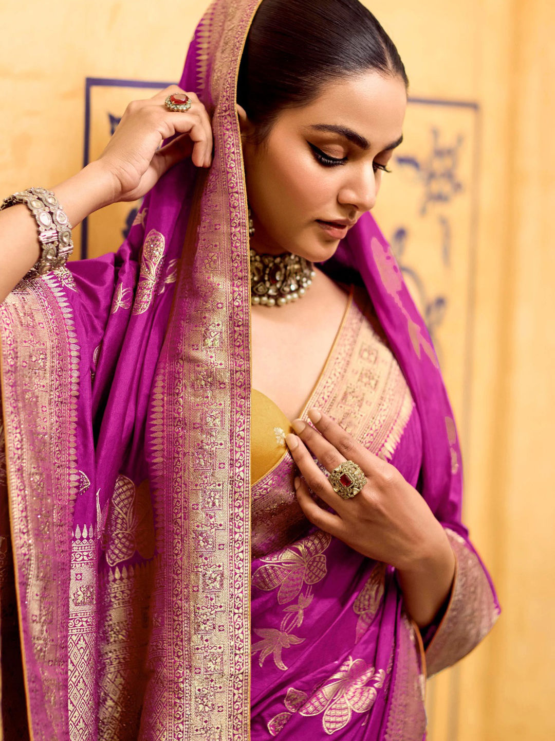 in Pink and Majenta with Weaving work