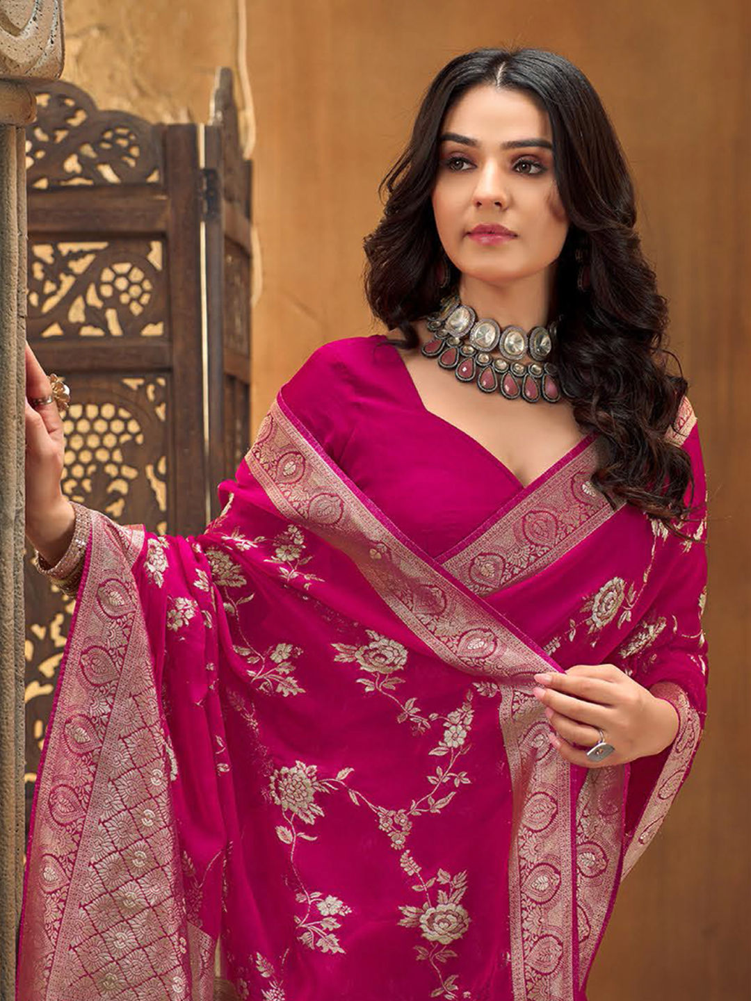 in Pink and Majenta with Weaving work