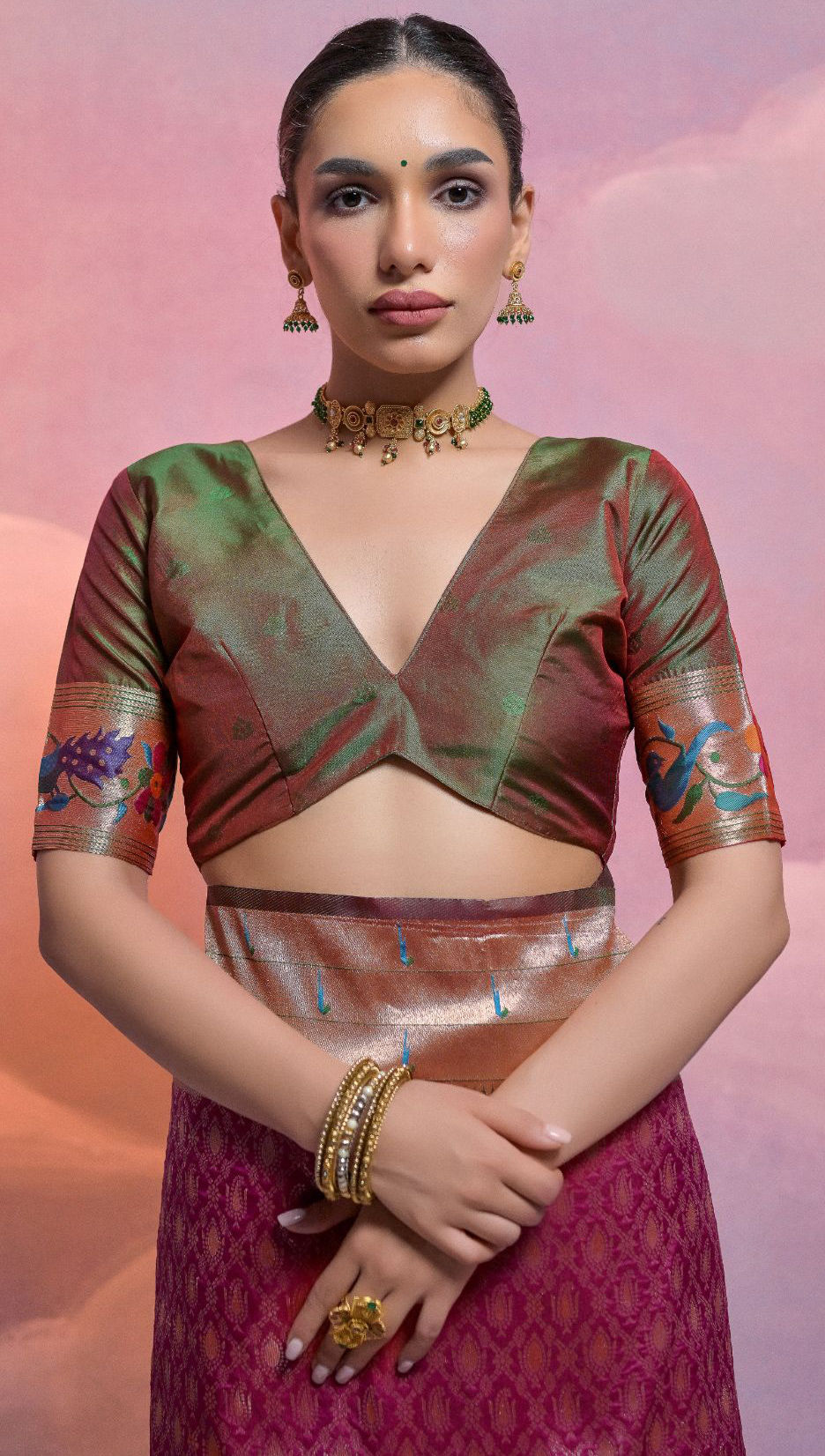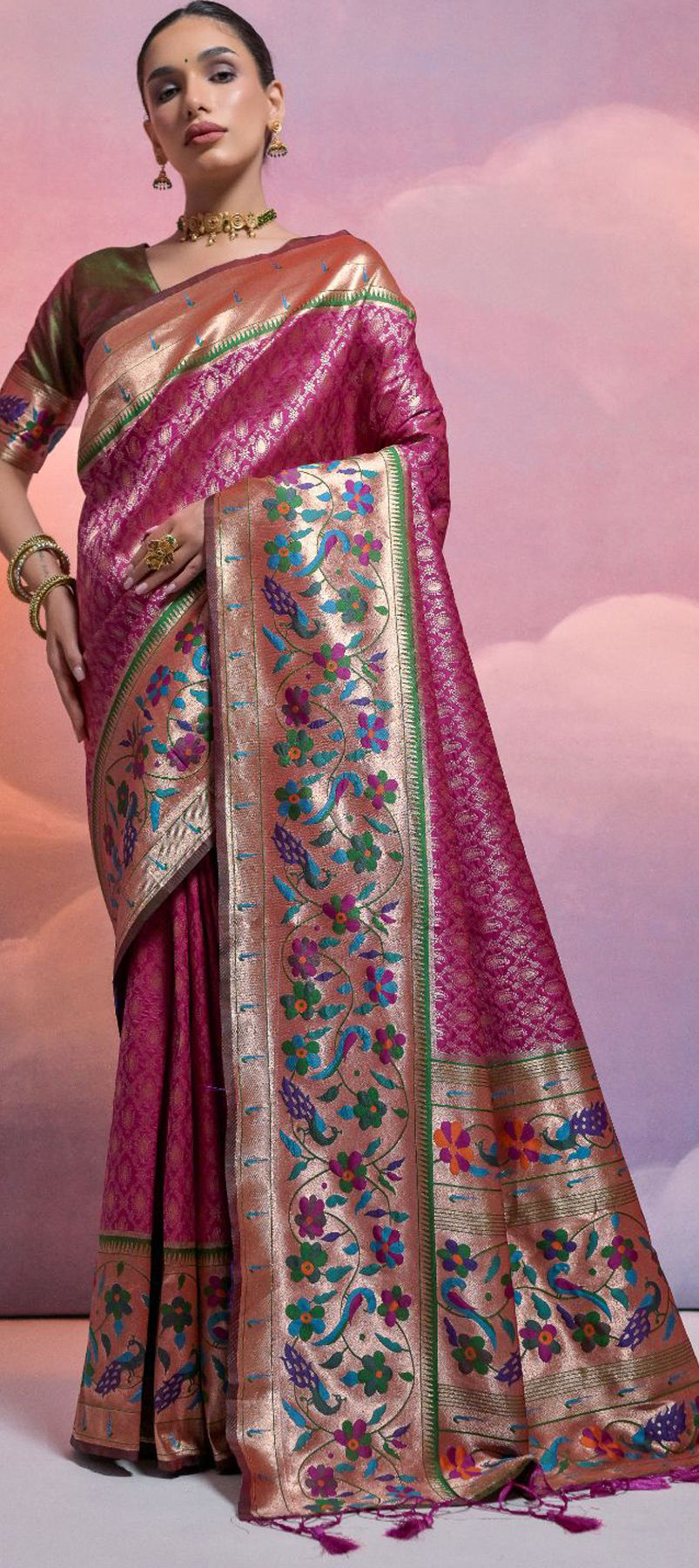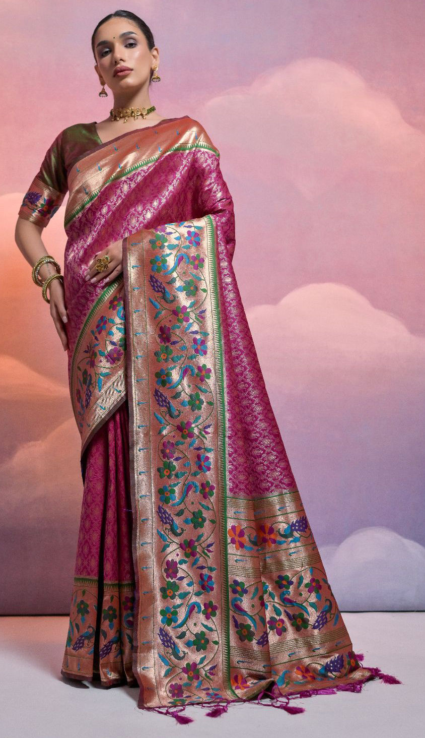 in Pink and Majenta with Zari work