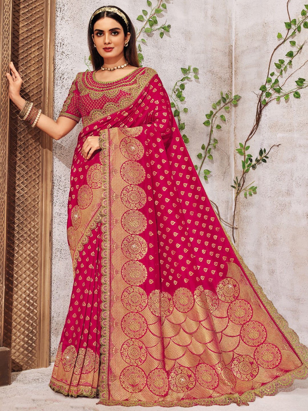 Pink and Majenta color Saree in Silk fabric with Embroidered, Resham, Sequence, Thread, Zari work