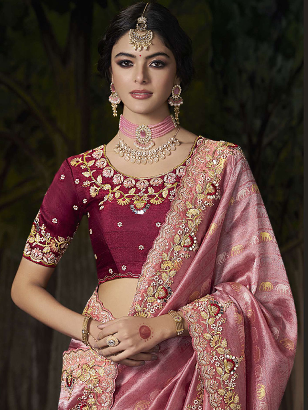 Silk Wedding Saree in Pink and Majenta with Zari work