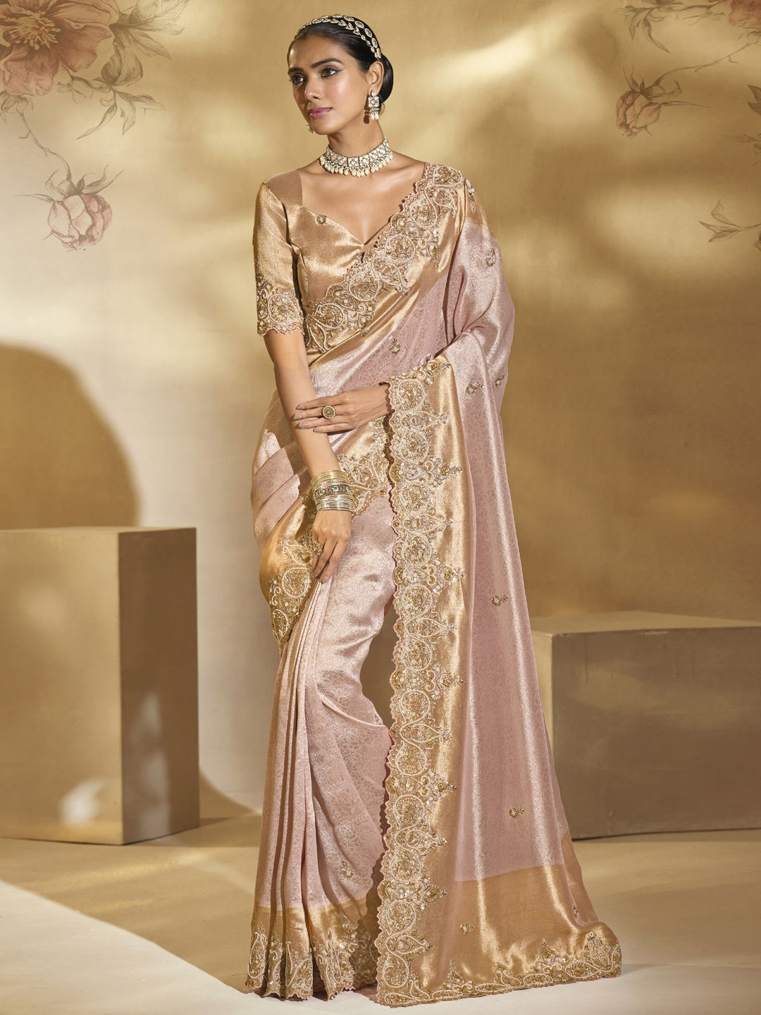 Pink and Majenta color Saree in Silk fabric with Cut Dana, Moti, Zari work
