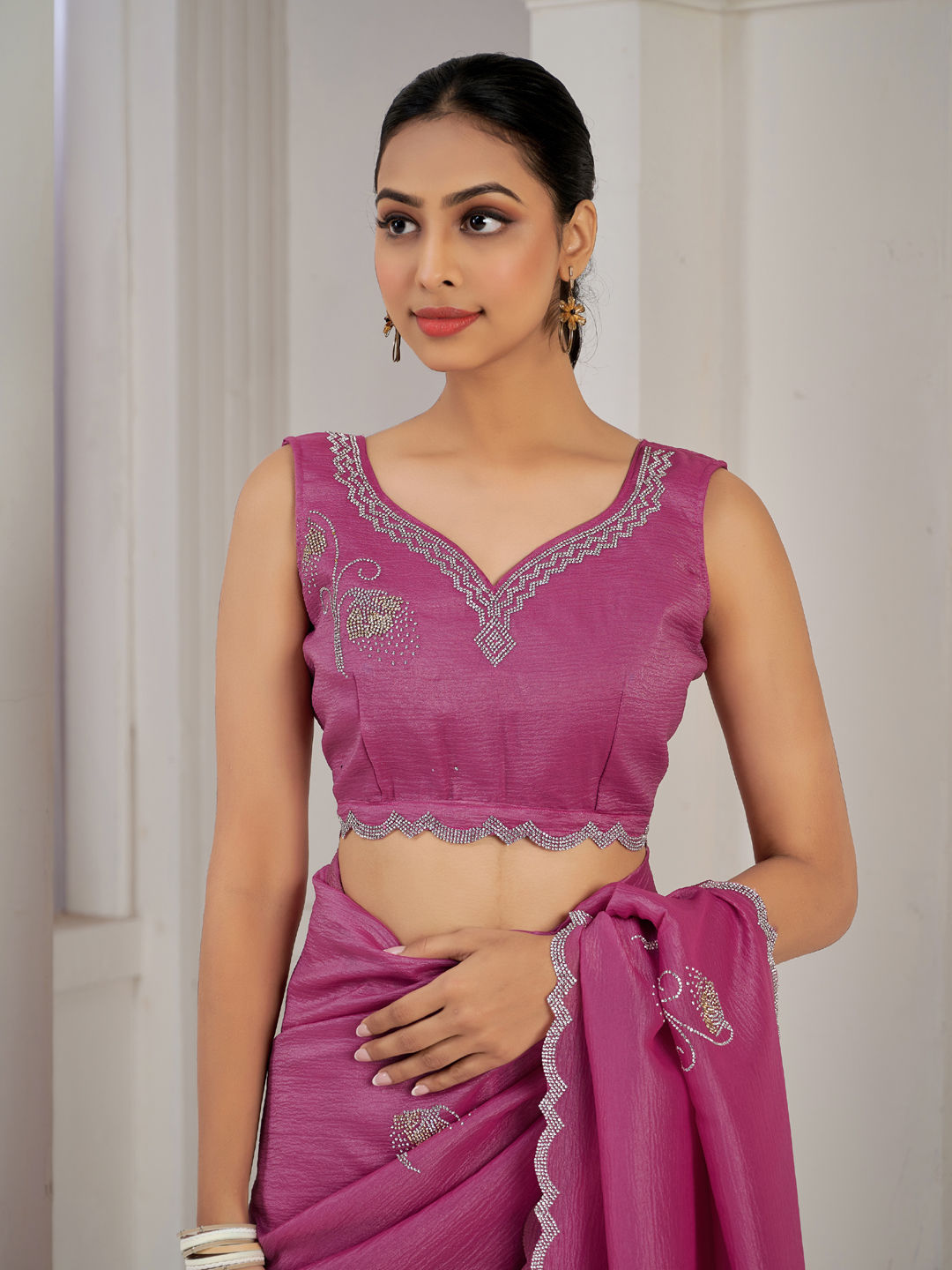 in Pink and Majenta with Zircon work