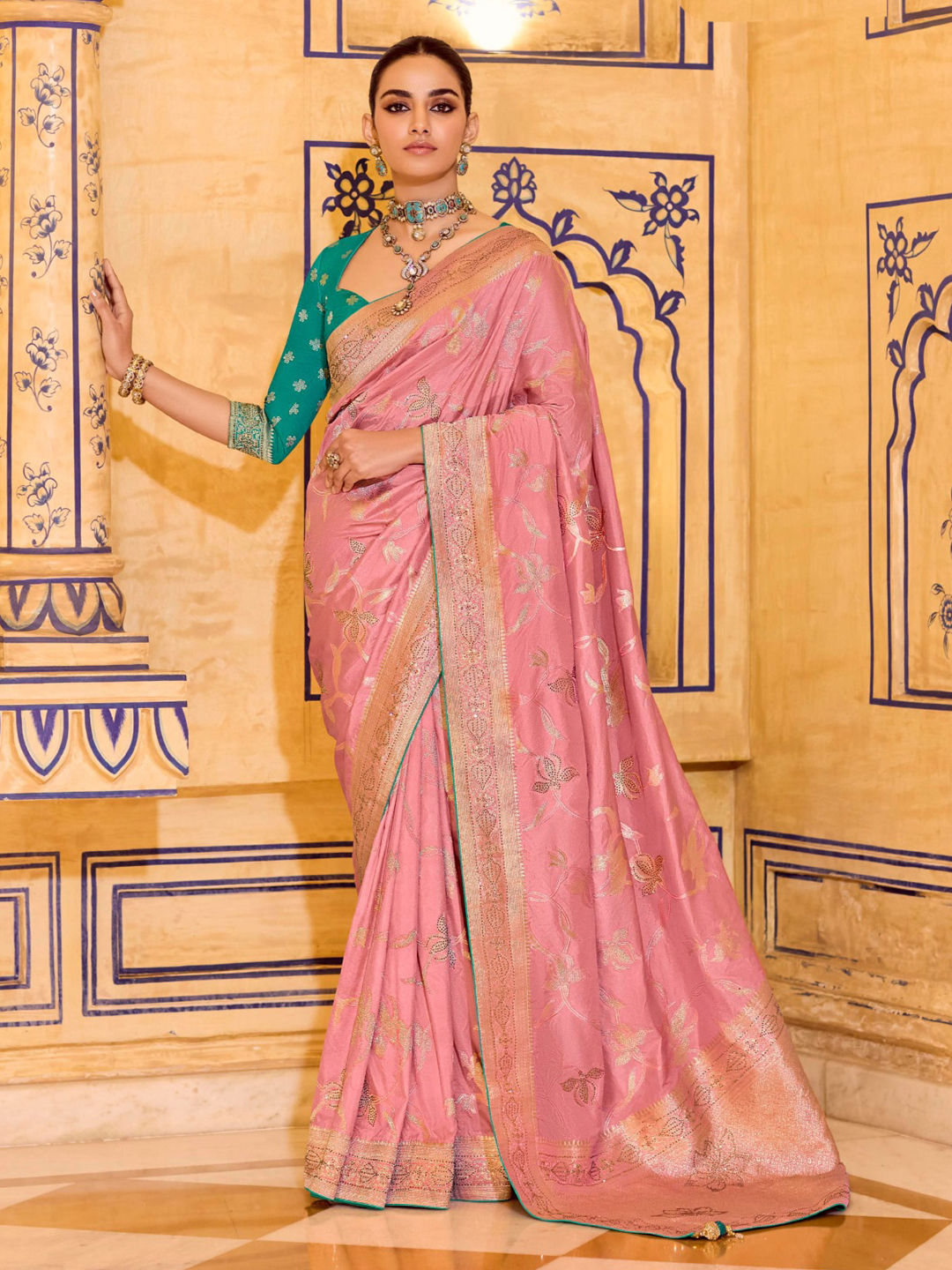 Silk Traditional Saree in Pink and Majenta with Weaving work