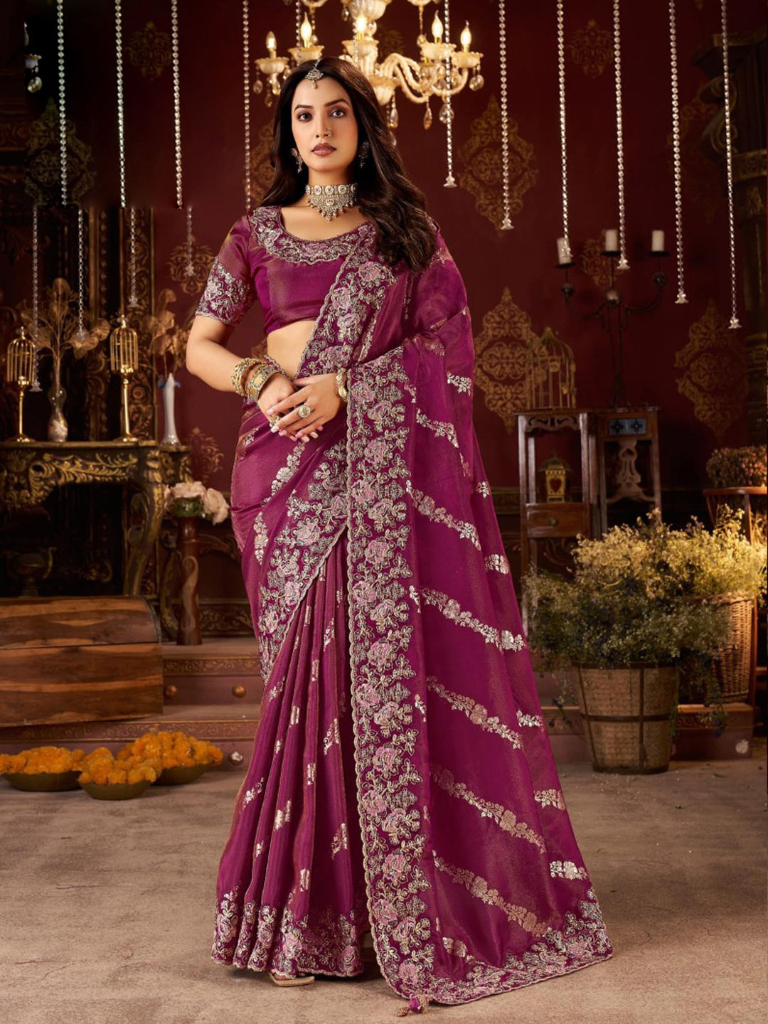 in Purple and Violet with Thread work