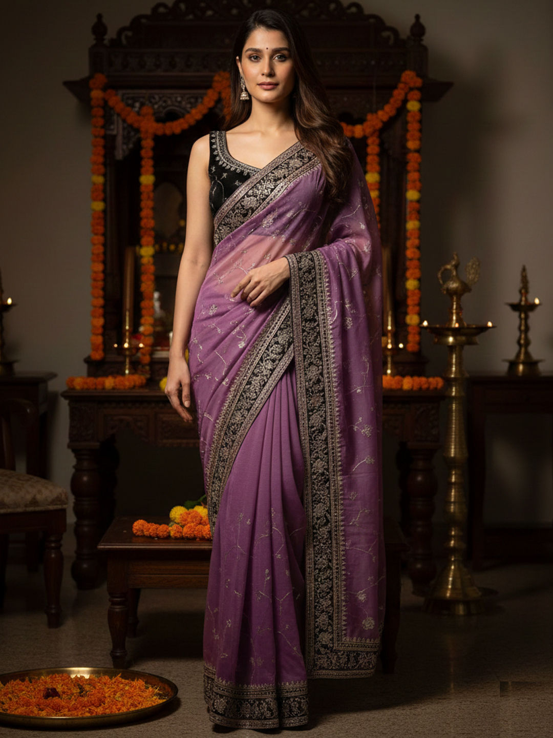 in Purple and Violet with Valvet work