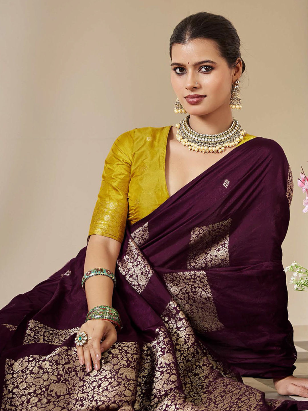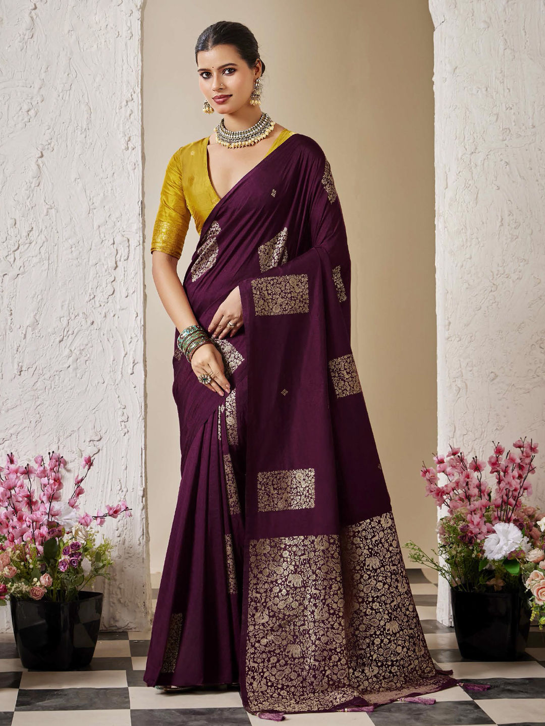 Purple and Violet color Saree in Silk fabric with Weaving work