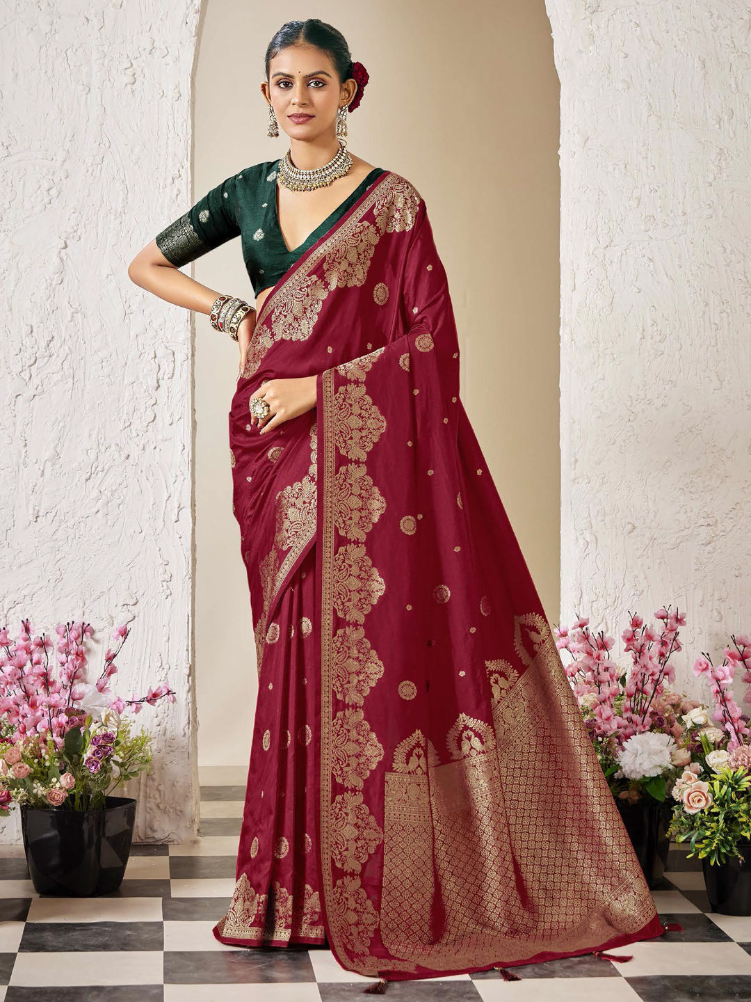 Red and Maroon color Saree in Silk fabric with Weaving work