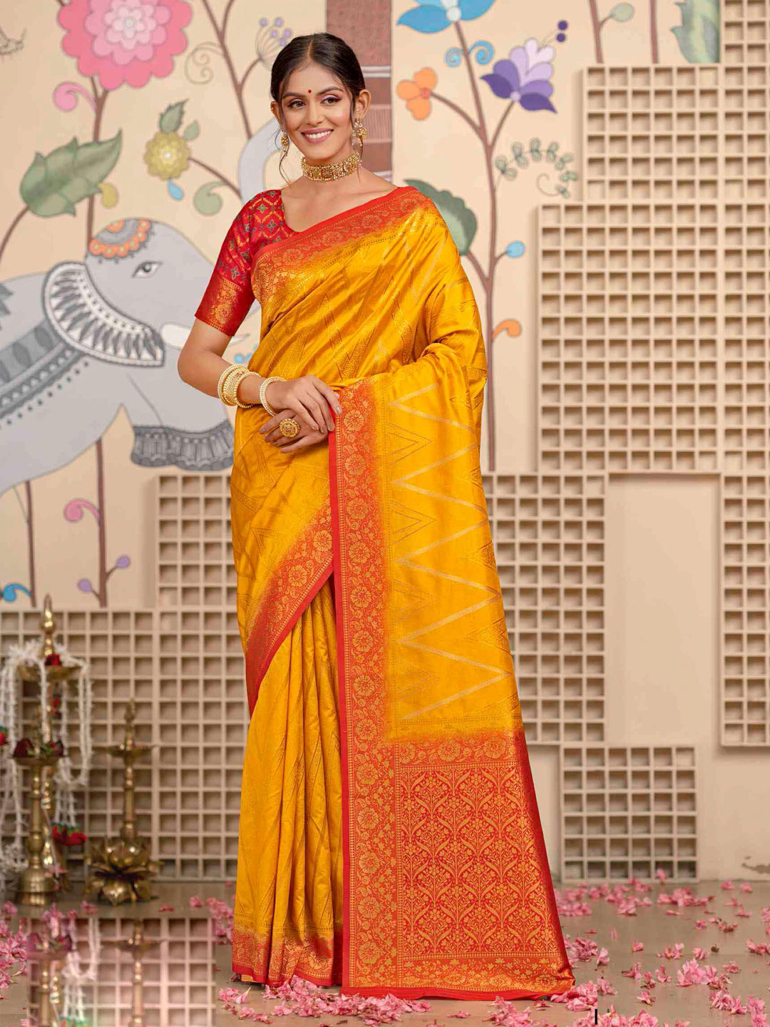 Yellow color Saree in Silk fabric with Weaving work