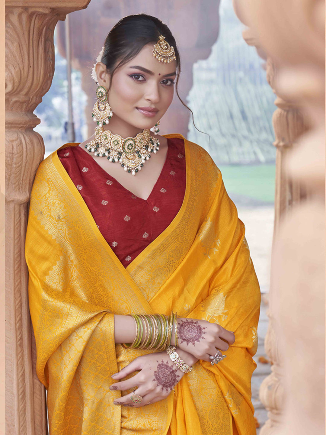 in Yellow with Weaving work