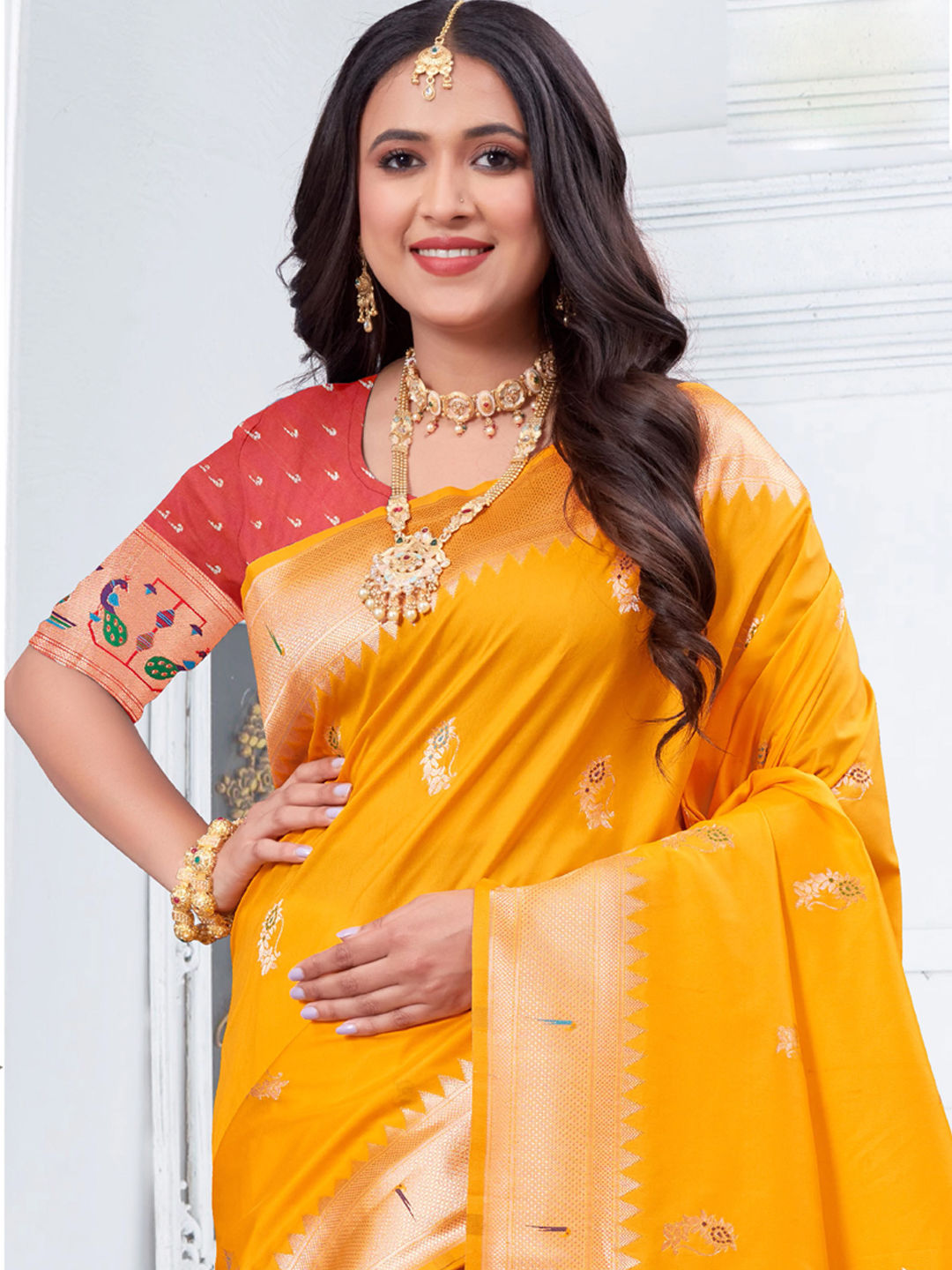 in Yellow with Zari work
