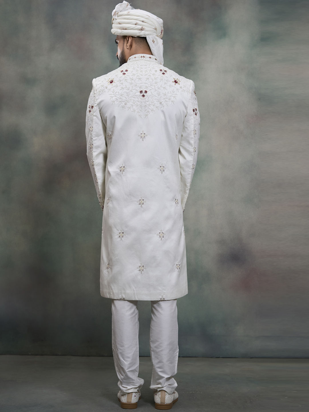 White and Off White color Sherwani in Silk fabric with Embroidered, Sequence work