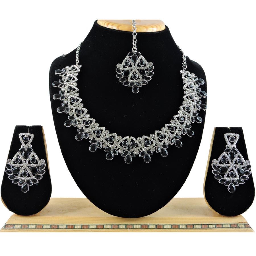 Silver Rodium Polish Black and Grey color Necklace in Metal Alloy studded with Austrian diamond