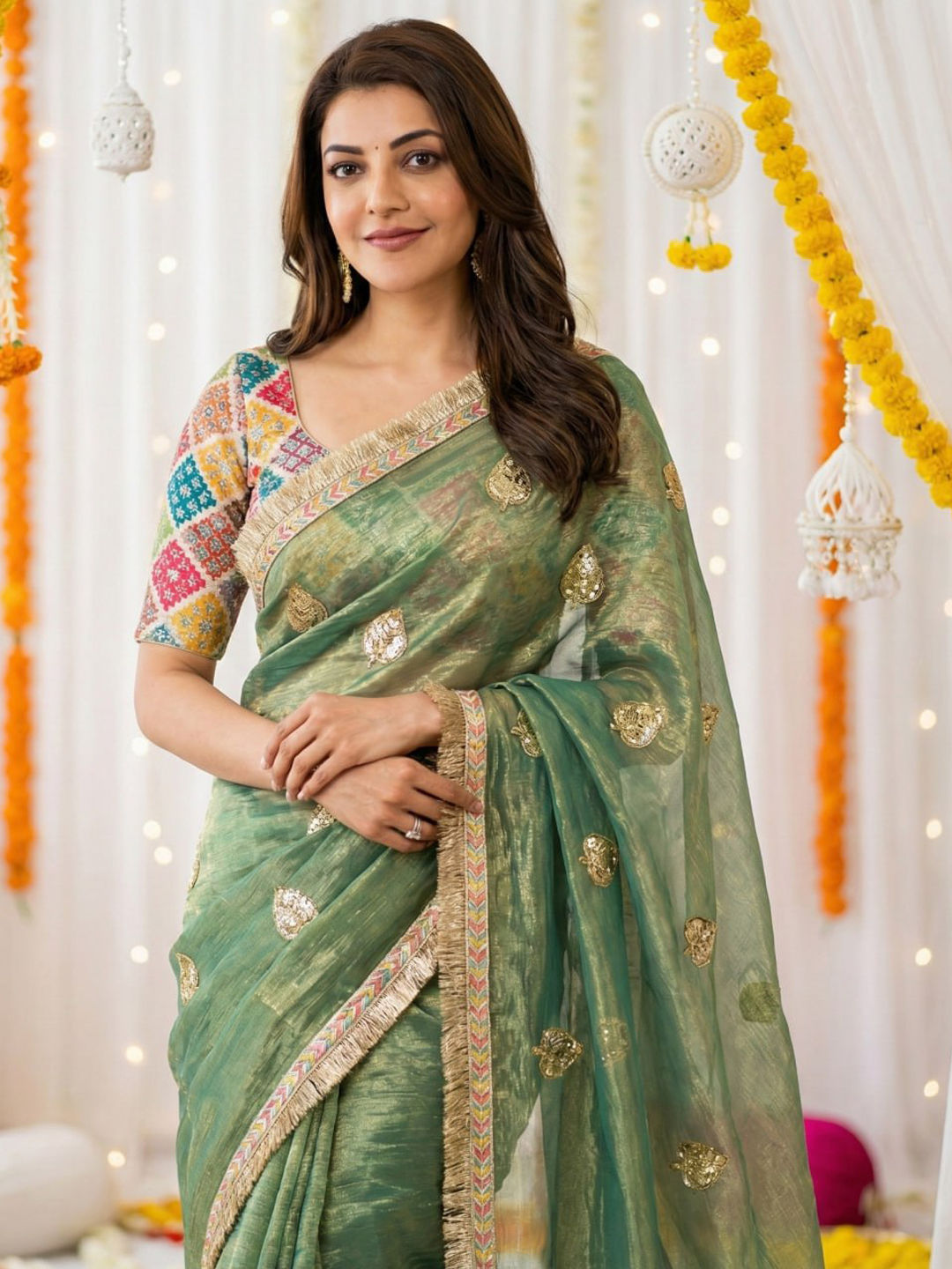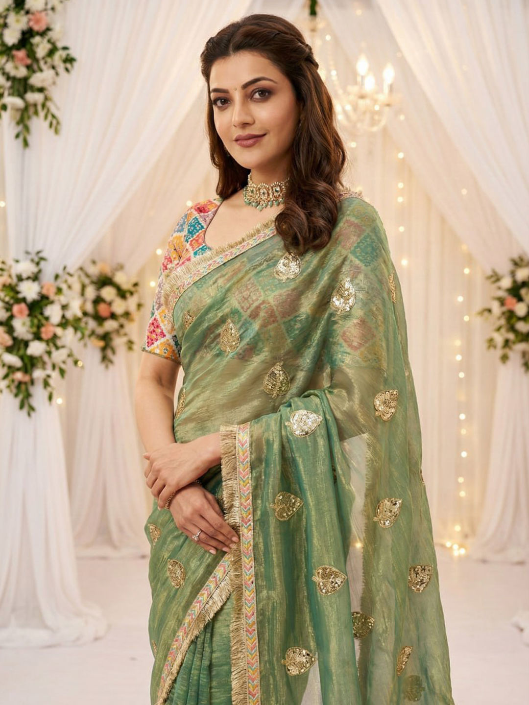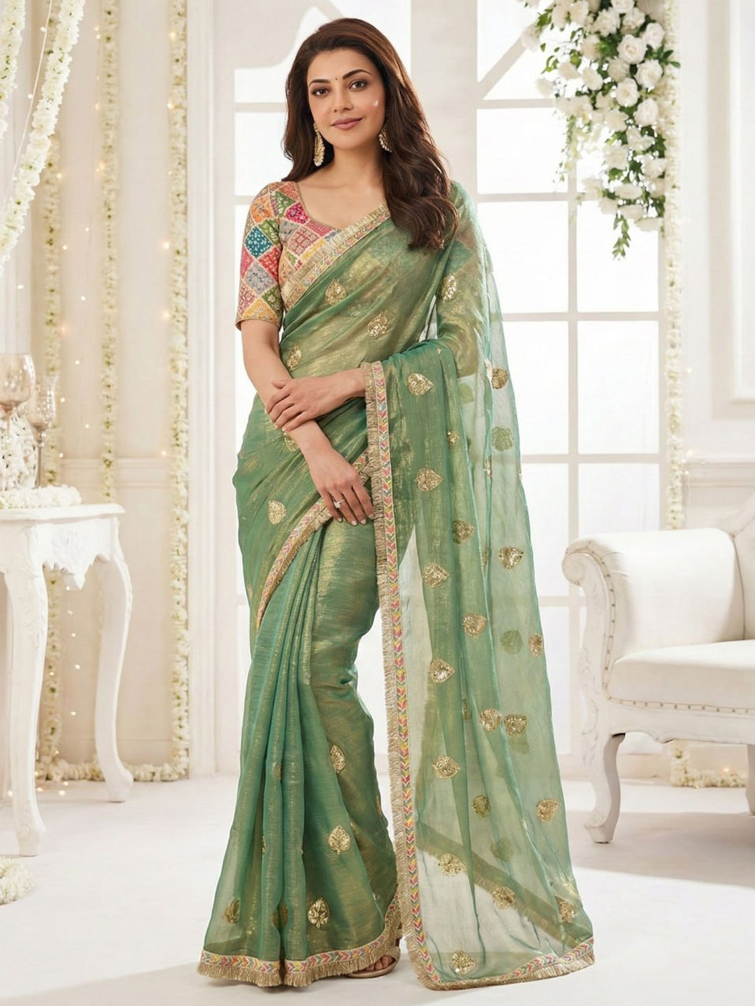 Green color Saree in Tissue fabric with Embroidered, Sequence work