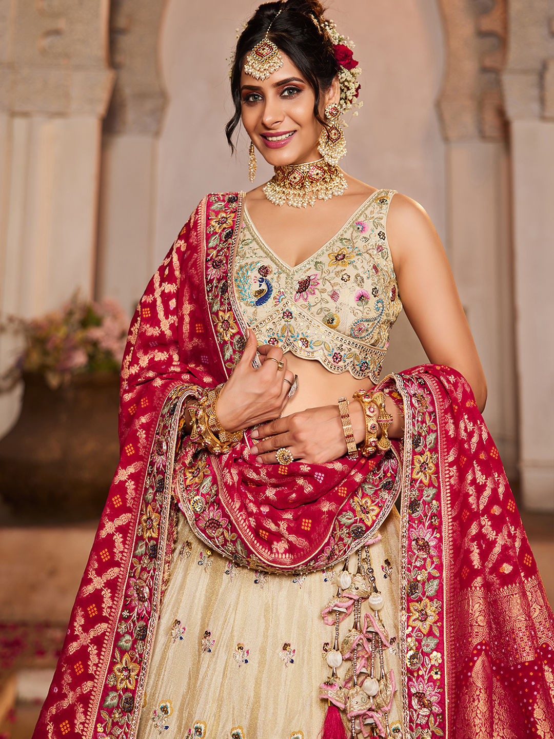 Pink and Majenta color Lehenga in Tissue fabric with Bugle Beads, Sequence, Thread work