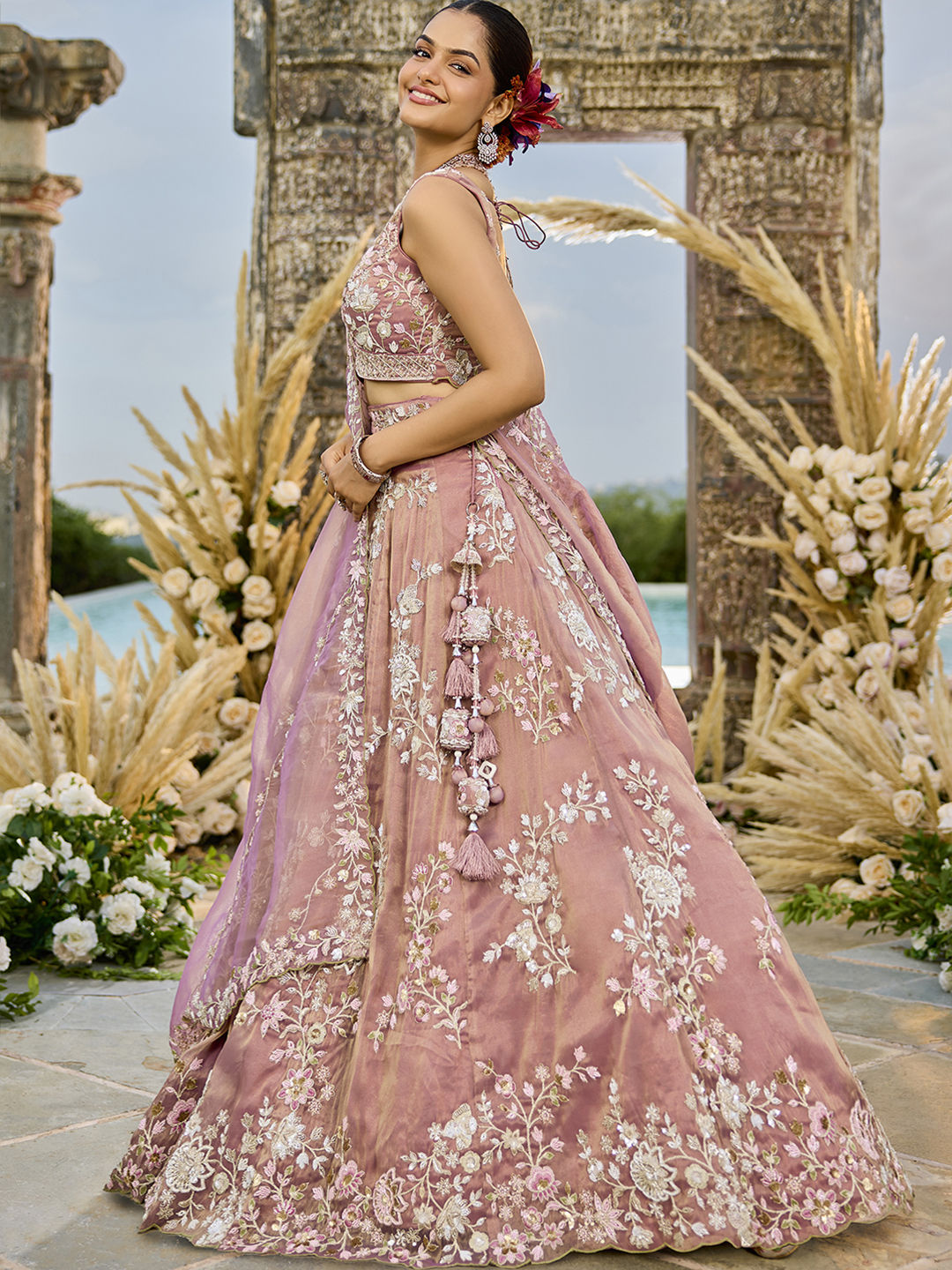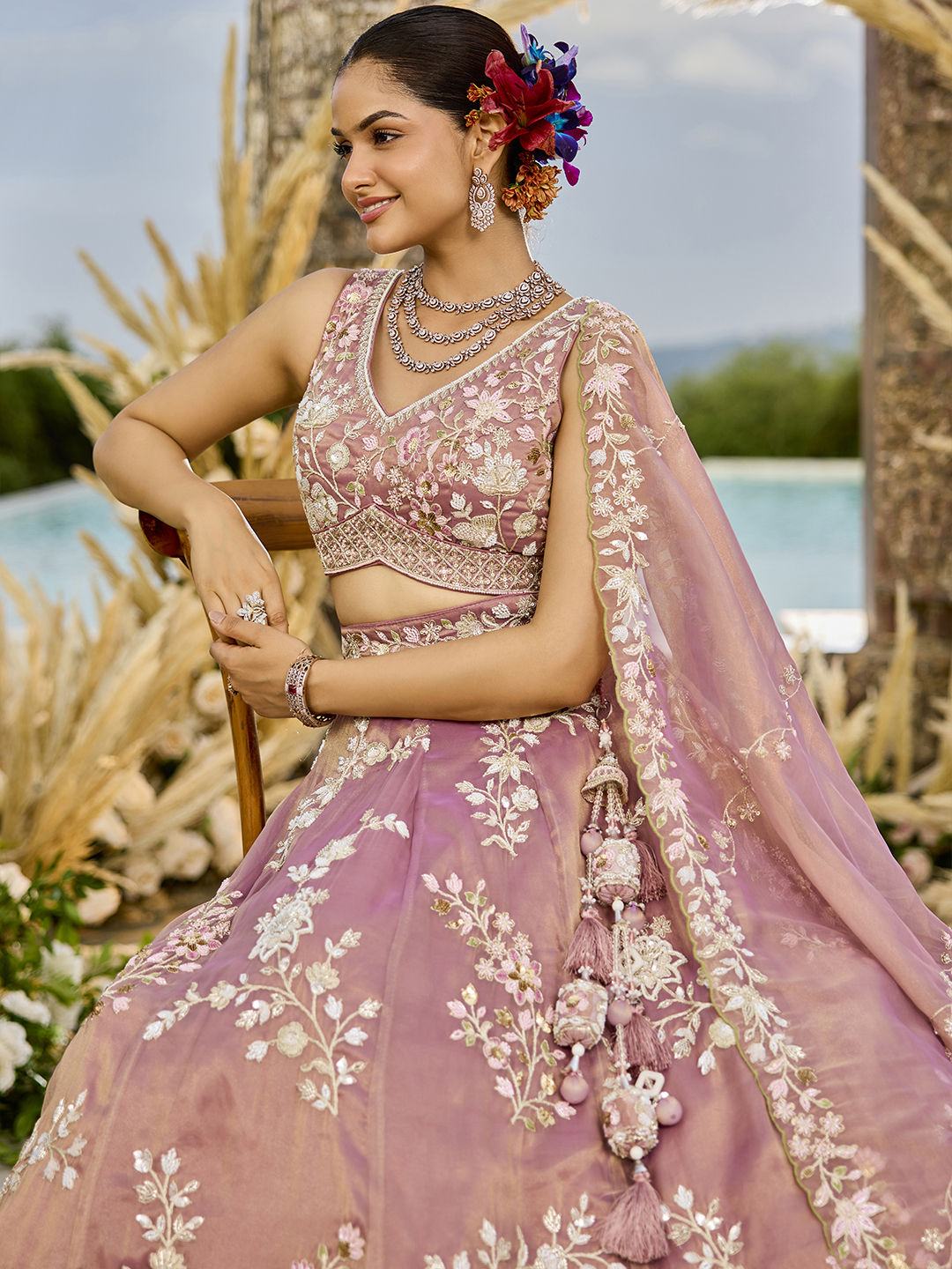 Tissue Wedding Lehenga in Purple and Violet with Sequence work