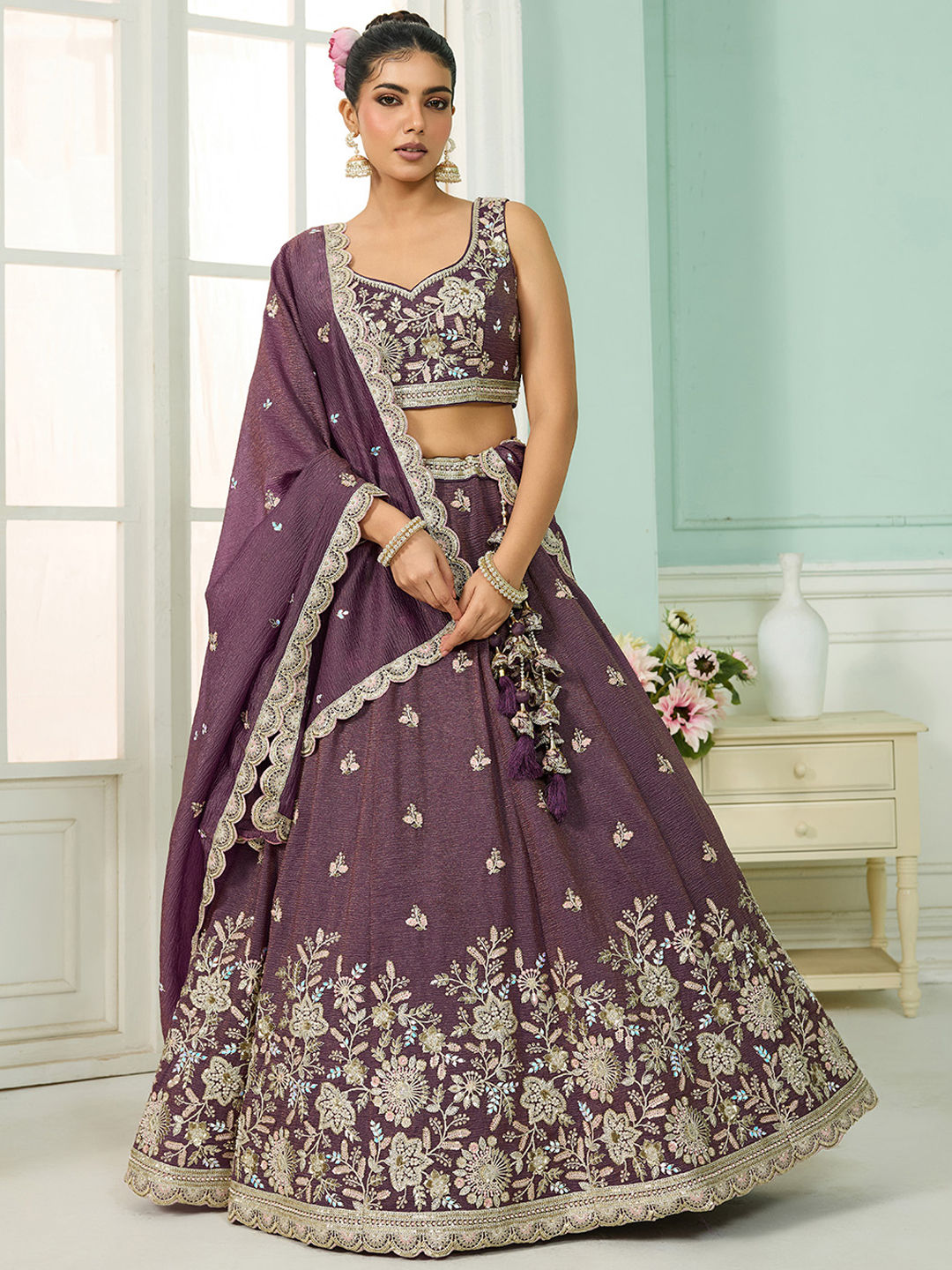Purple and Violet color Lehenga in Tissue fabric with Embroidered, Sequence, Stone, Thread work